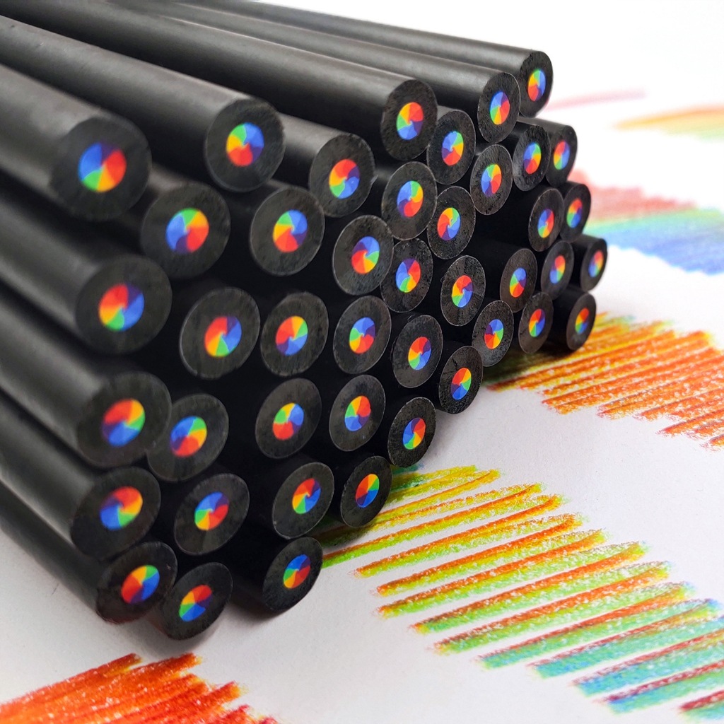 7Colors Rainbow Core Pencil Black Drawing Color Pencil School Art Kawaii Stationery Painting Blackwood Graffiti Pencil
