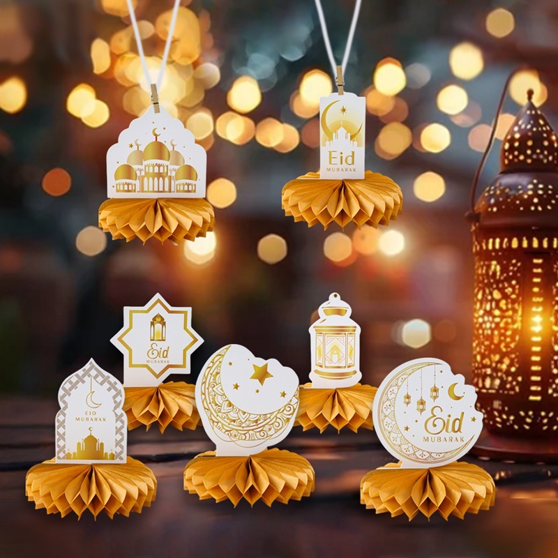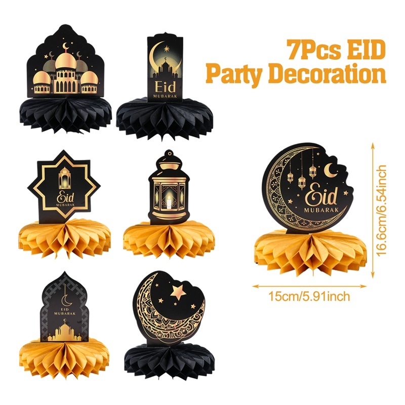7pcs Eid Mubarak Black Gold Honeycomb Ball Table Decor Centerpieces Islamic Decorations For Table Islamic Muslim Party Supplies Hari Raya Decoration 2025