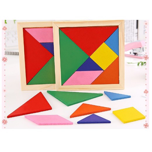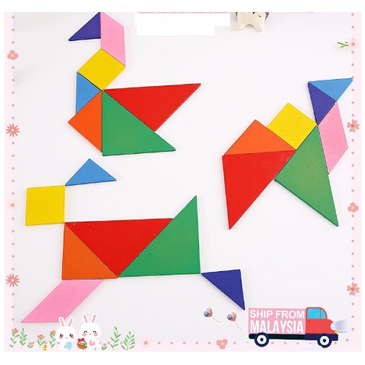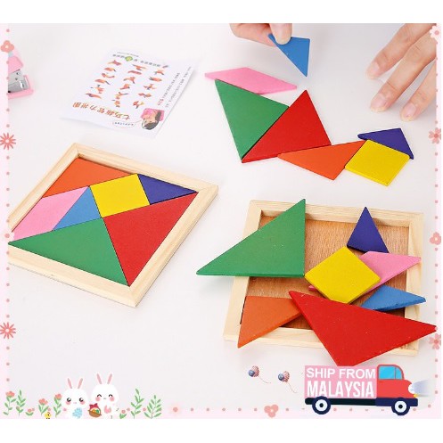 7pcs Wooden Tangram Puzzle Colourful Wooden Tangram Early Education Goodies Bag