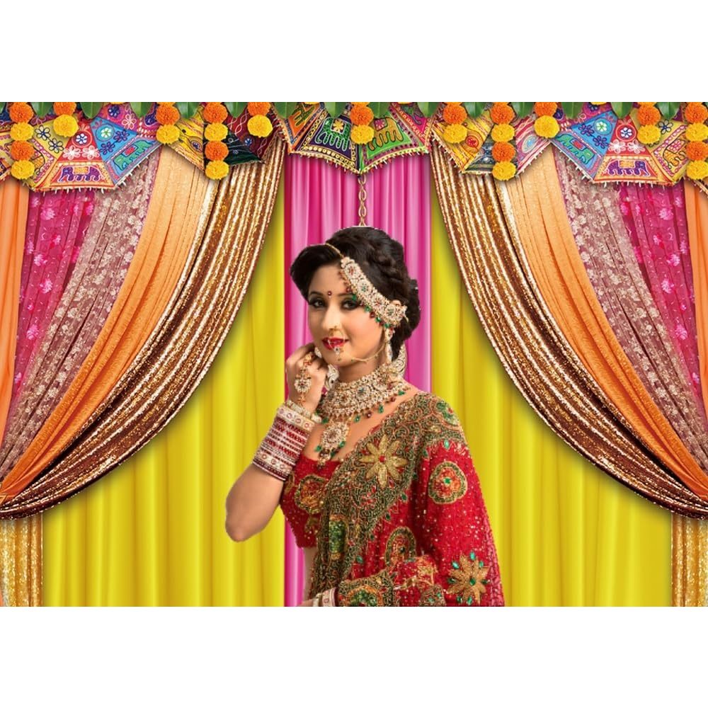 7x5ft Indian Traditional Photography Background Diwali Pooja Colorful Curtain Decorations Indian Bridal Shower Wedding Party banner Photo Backdrop