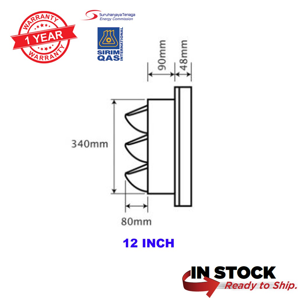 8" 10" 12" EXHAUST FAN / VENTILATION FAN WALL TYPE KITCHEN / TOILET KIPAS EKZOS SIRIM APPROVED