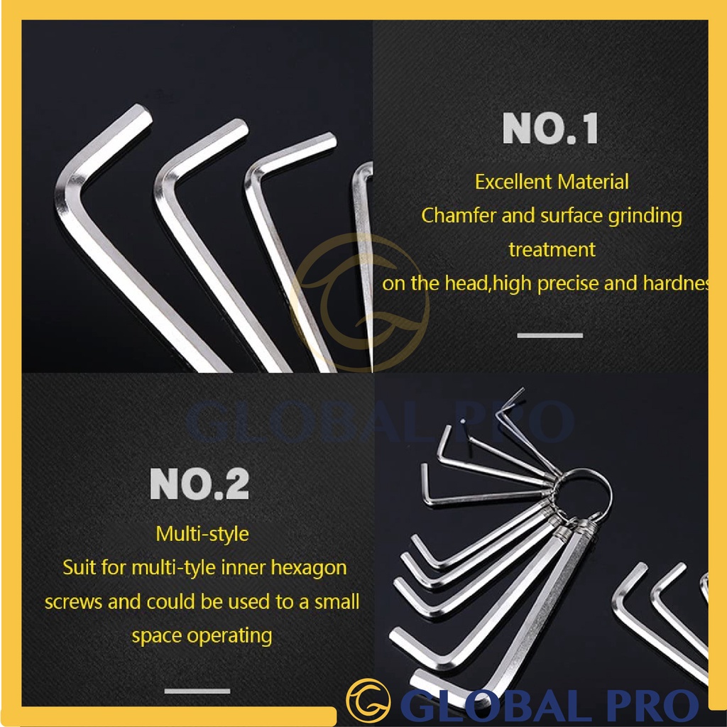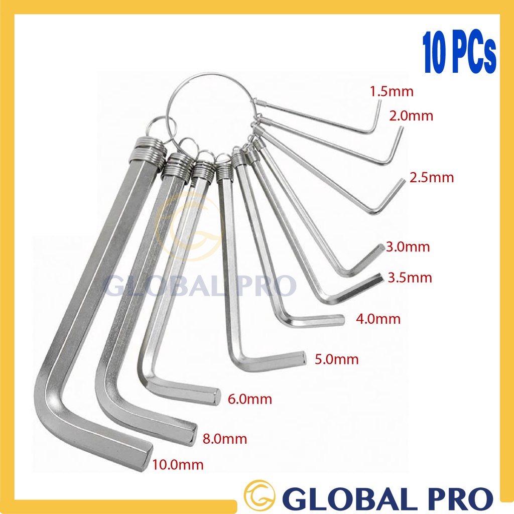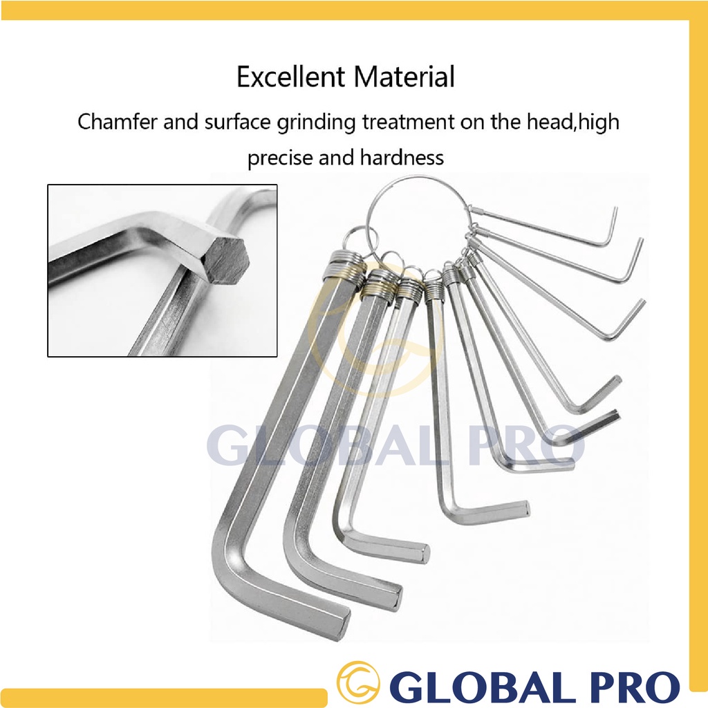 8/10 PCS D0MIN0 High Quality Allen Key Set Chrome Hex Wrench with Ring Screw Nut Opener Kunci Skru Allen 1.5mm-10mm