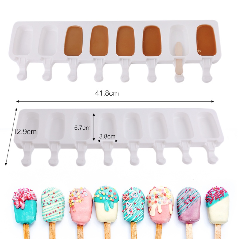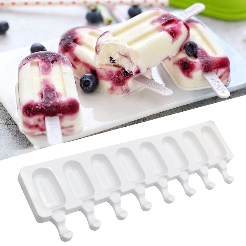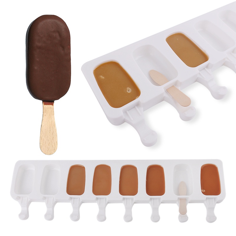 8-Cavity Silicone Mold Oval Mould Kids Popsicle Tray Ice Cream Model Candy Cake Baking Gadget Candle Crafts DIY For Family Wedding Birthday Party