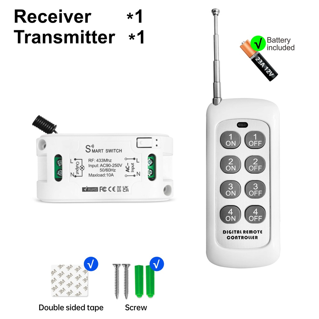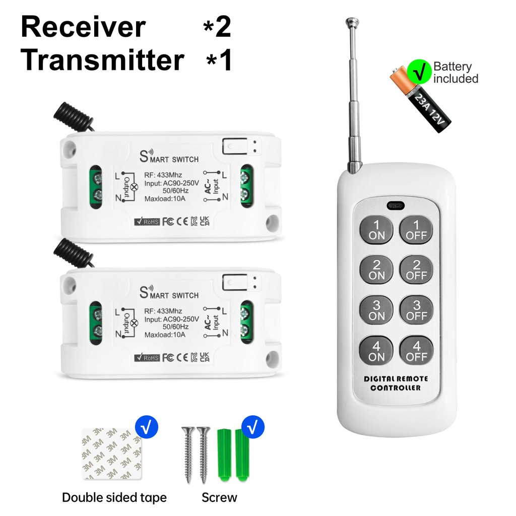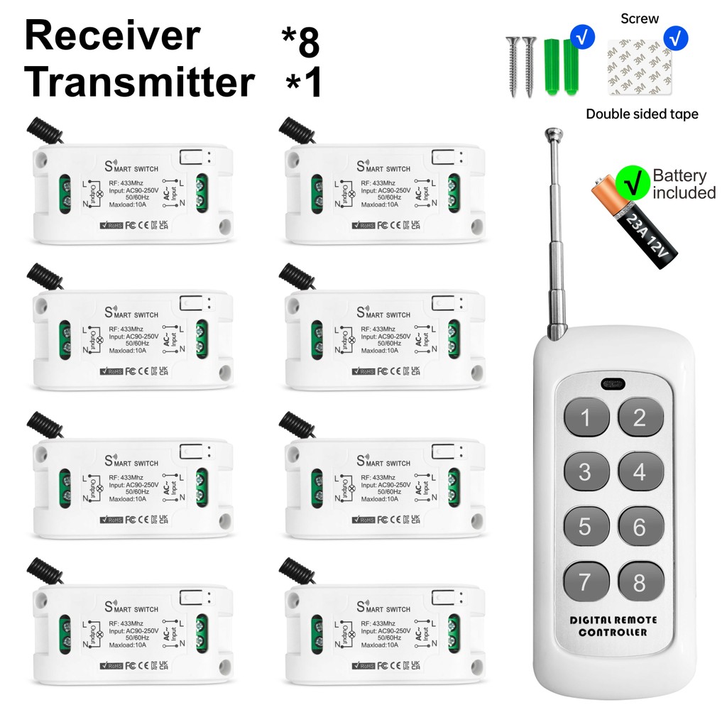 8 Channel RF 433MHz Wireless remote control switch,1/2/3/4/8 Gang AC 110V 220V 240V relay for Light,Fan,Lamp,LED