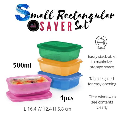 8 Colour: Tupperware Small Rectangular Saver Lunch Box 500ml Bekal nasi (Tupperware mini Container) Bekas Makan
