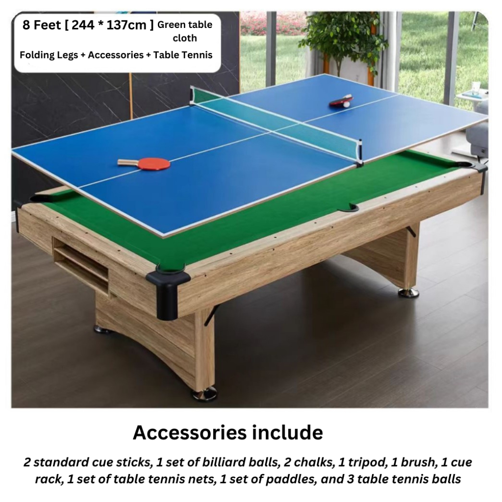 8-Foot Folding Pool Table - Compact Indoor Household 3-In-1 Billiard Table for Adults l Meja Biliar Lipat 8 Kaki
