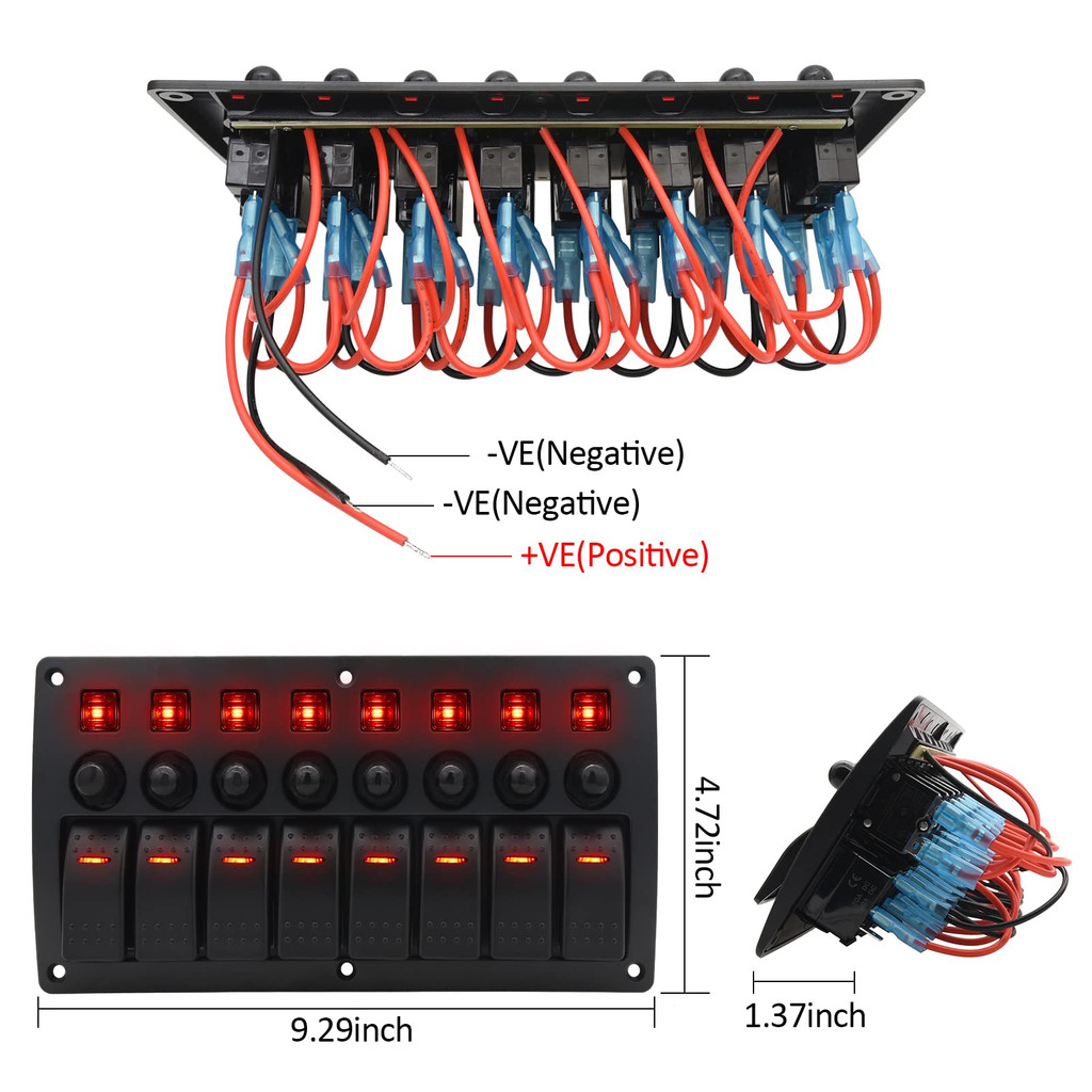 8 Gang Marine Rocker Switch Panel, Boat Switch Panel Waterproof, Marine Switch Panel, 12V Aluminum Switch Panel for Car RV Truck Green LED Toggle Switch with Circuit Breaker