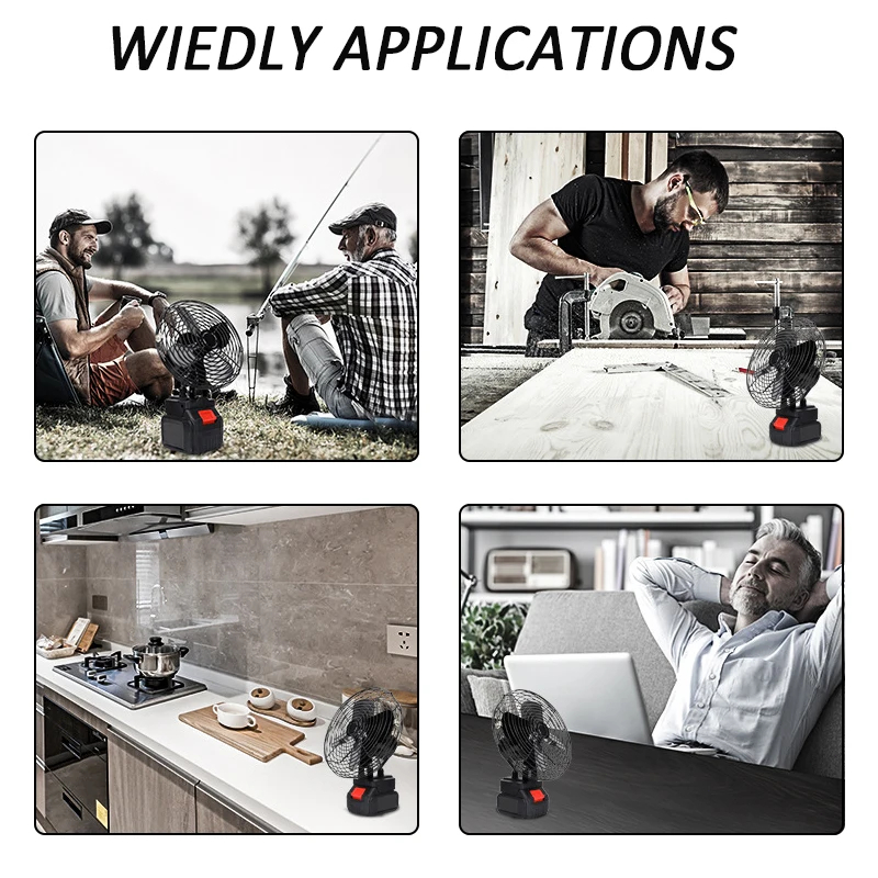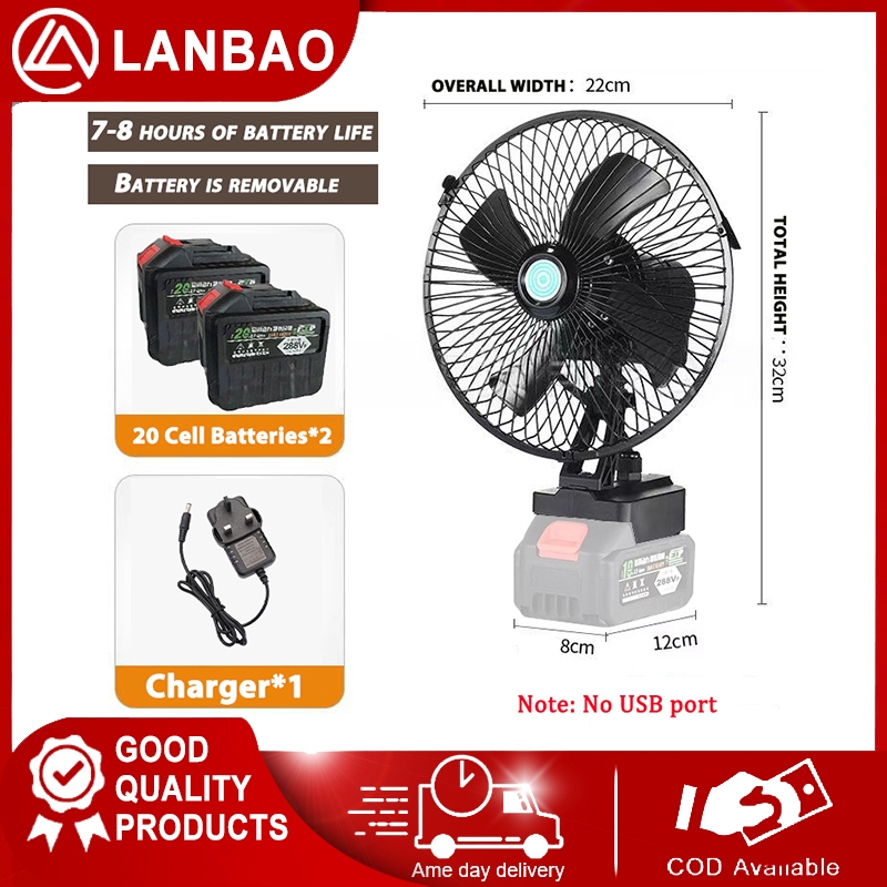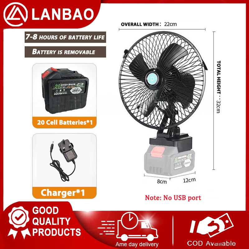 8 Inch Portable Camping Fan Cordless Rechargeable High Power Outdoor Desktop Cooling Fans for Makita Battery