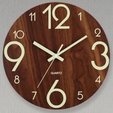 8-Inch 12inch luminous wood grain wall clock wooden board silent clock cross-border Amazon explosion luminous fluorescent watch