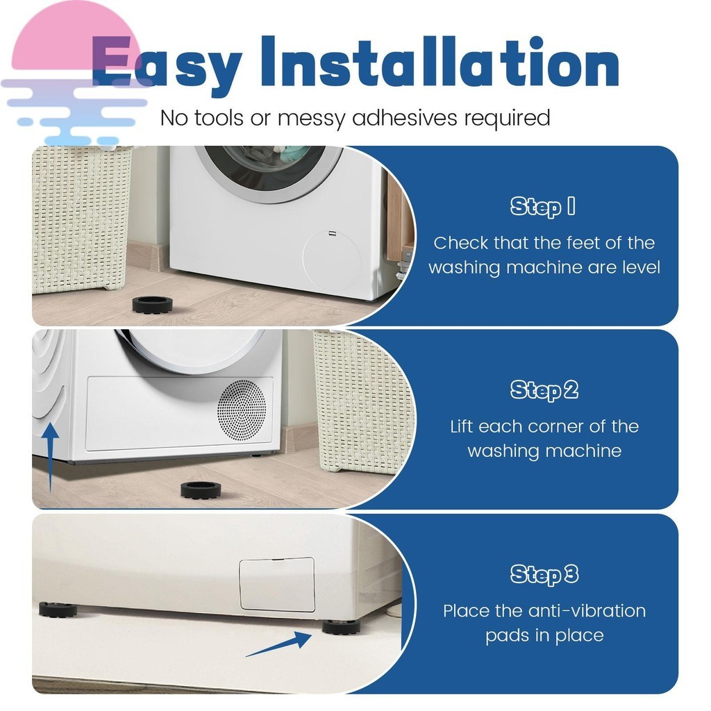 8 Pcs Anti Vibration Pad with 19 Strong Adsorption Suction Cups Reduce Noise Washing Machine Feet Pad Nonslip Washing Machine Stabilizer Rubber Washing Machine Support SHOPCYC1892