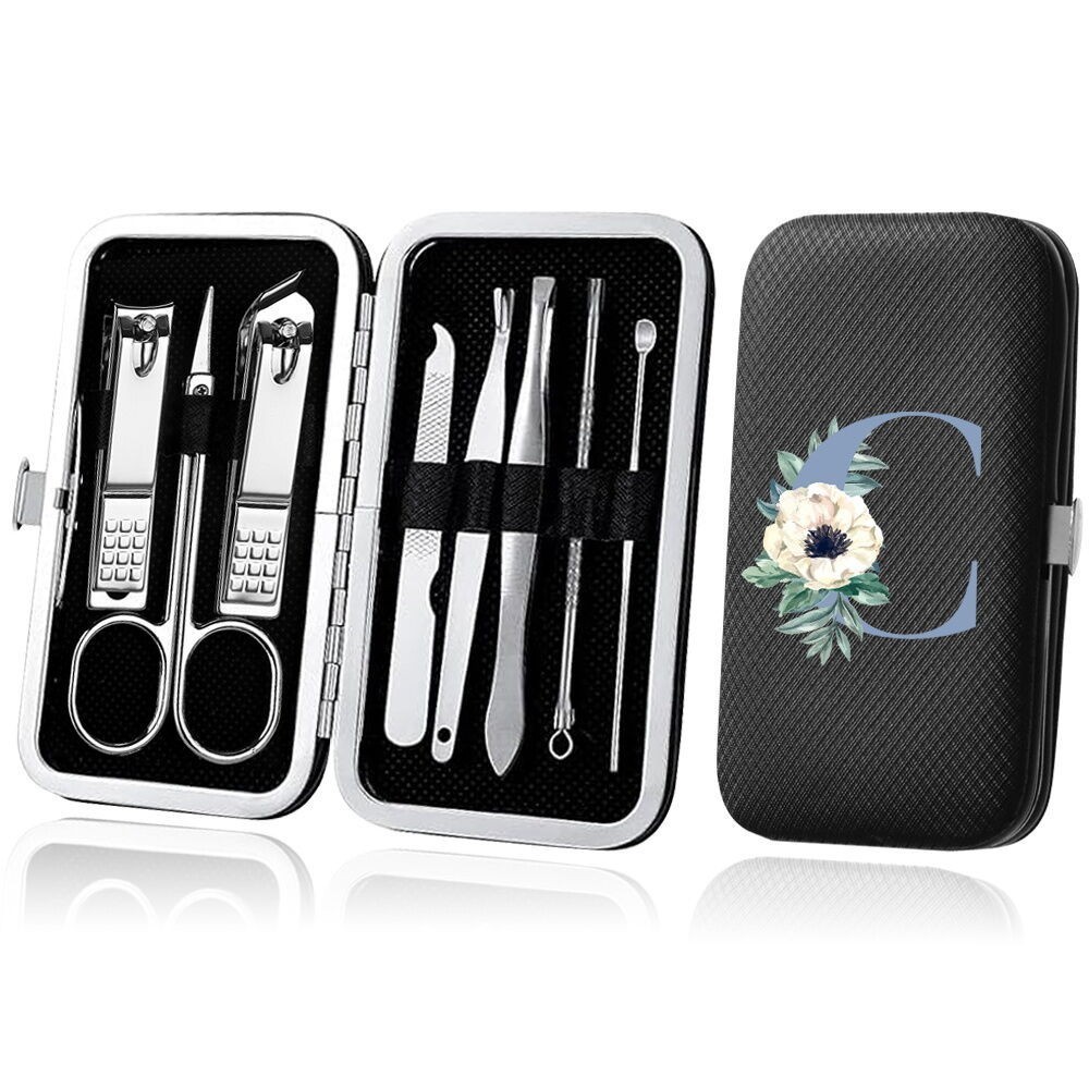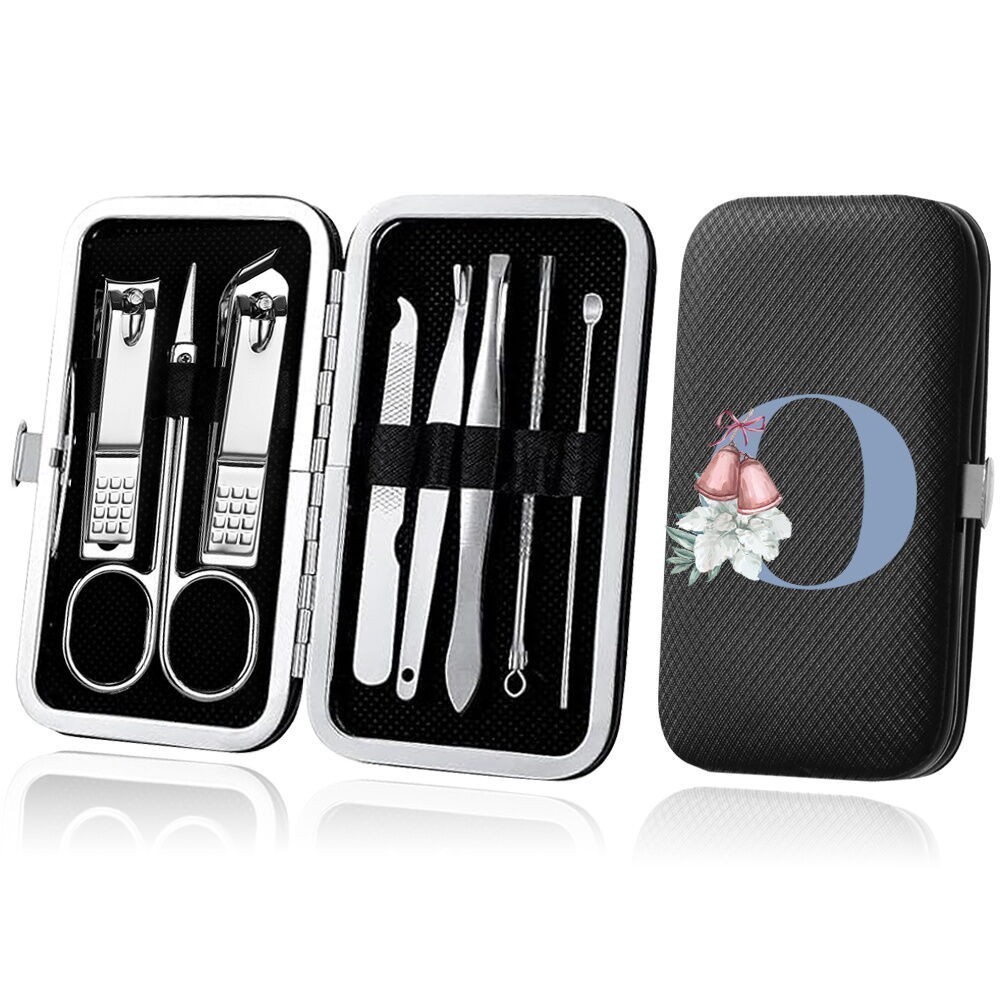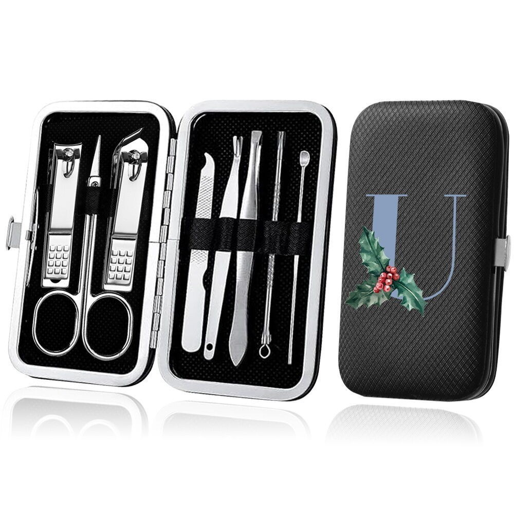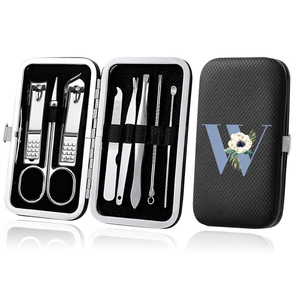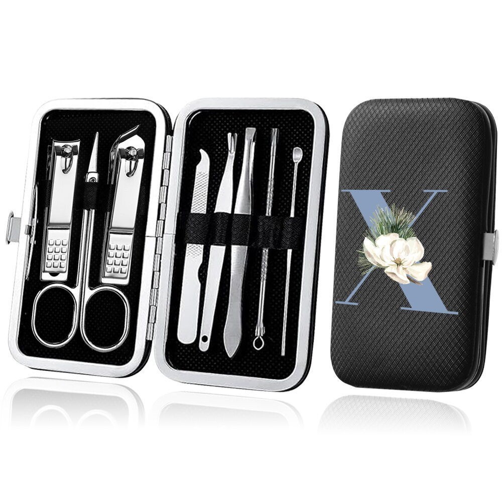 8-Piece Organizer Nail Tool blue Series Set Stainless Steel Black Manicure Nail Clipper Set Pedicure Kit Case
