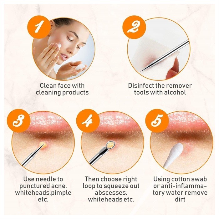 8 Piece Professional Acne Extraction Kit Blackhead and Whitehead Remover Tools