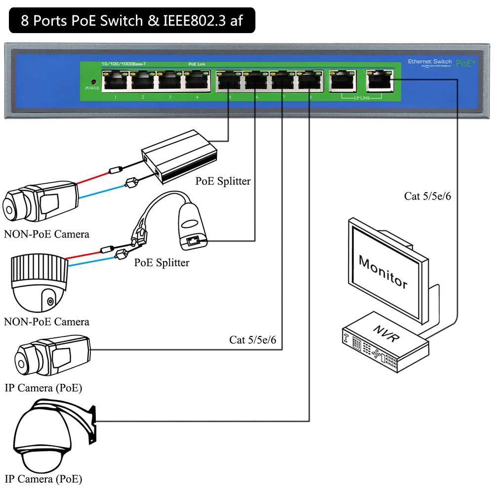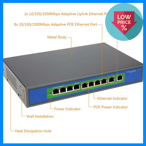 8 Port 1000Mbps IEEE802.3af POE Switch/Injector Power over Ethernet for IP Camera VoIP Phone AP devices 1010POE-AF (Uk)