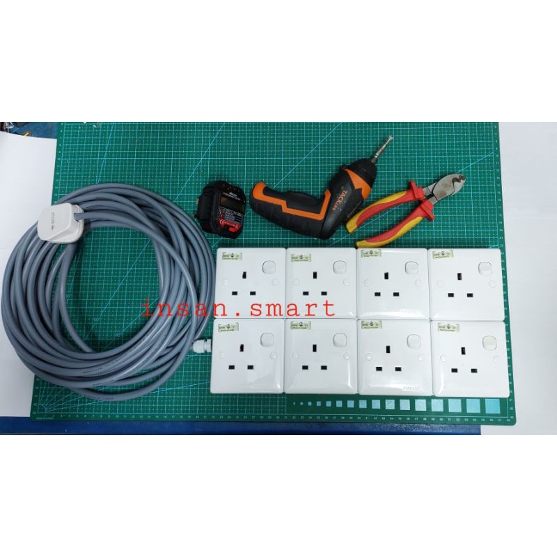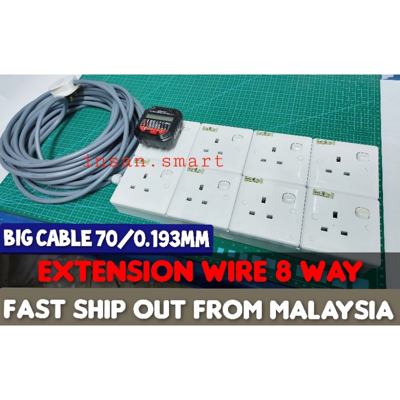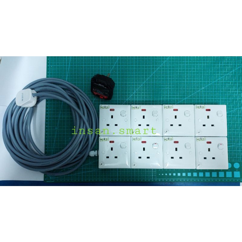 8 gang 8 ways extension wire socket 13A (heavy duty UMS) wayar besar 70/0.193mm