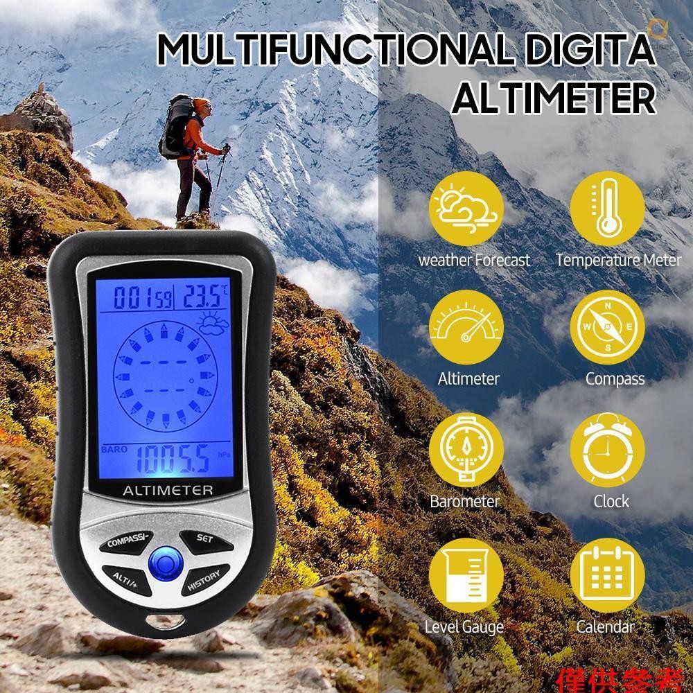8-in-1 Multifunctional Electronic Altimeter Barometer LCD Digital Compass Thermometer Portable Handheld Height Gauge Weather Forecast Barometric Pressure Tester Air Gauge