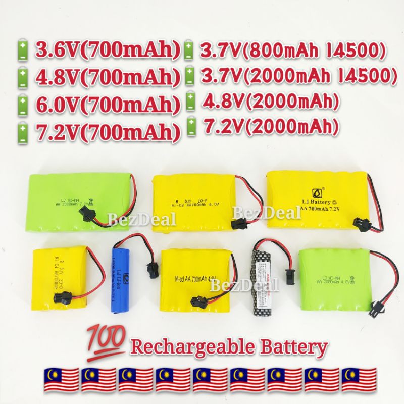 8.4V(2000mAh)7.2V(2000mAh)6.0V,4.8V 3.7V(2000mAh/14500) Bateri Kereta Control Rc Car Rechargeable Battery USB Charger
