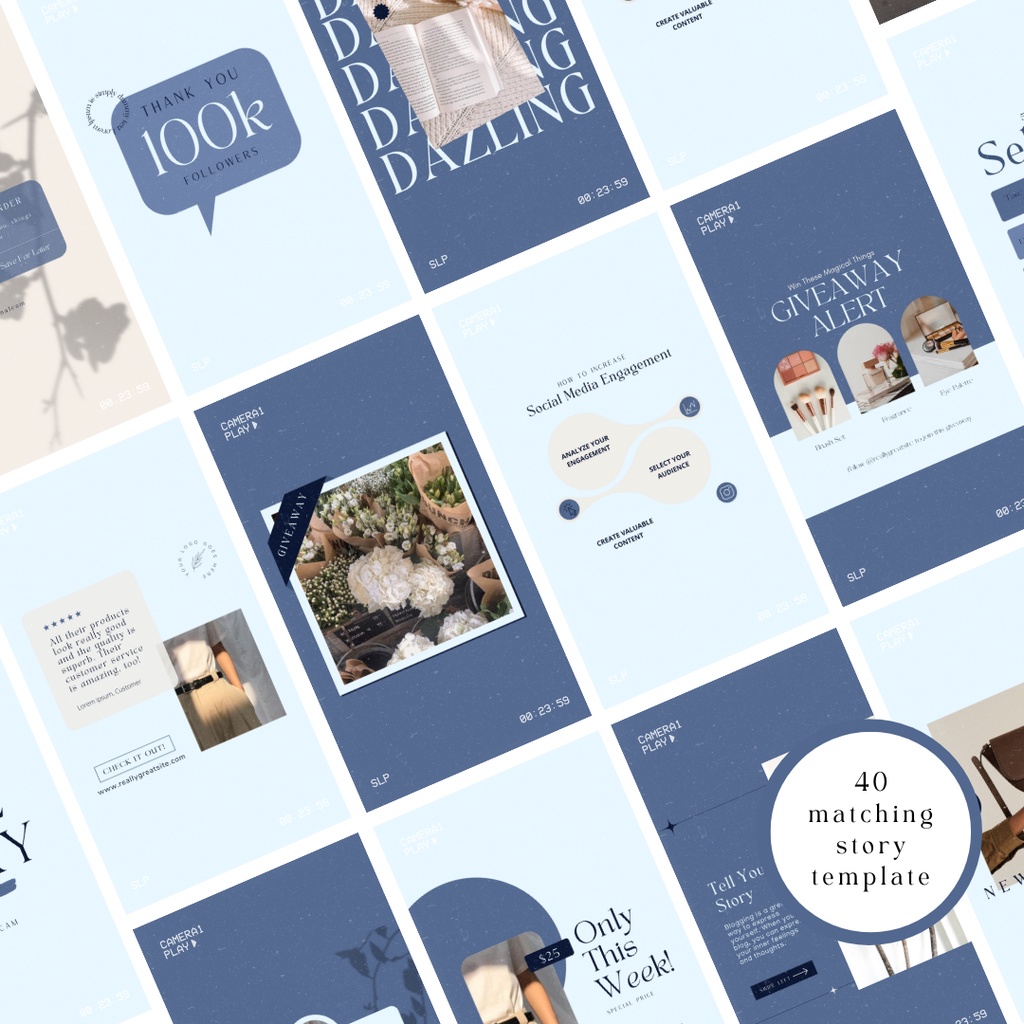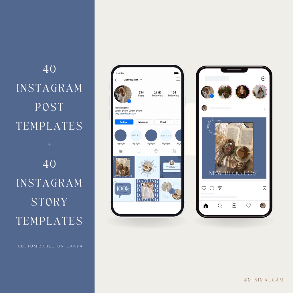 80+ Instagram Post Template, Social Media Template, Canva Template, IG Post Template, Blue Theme