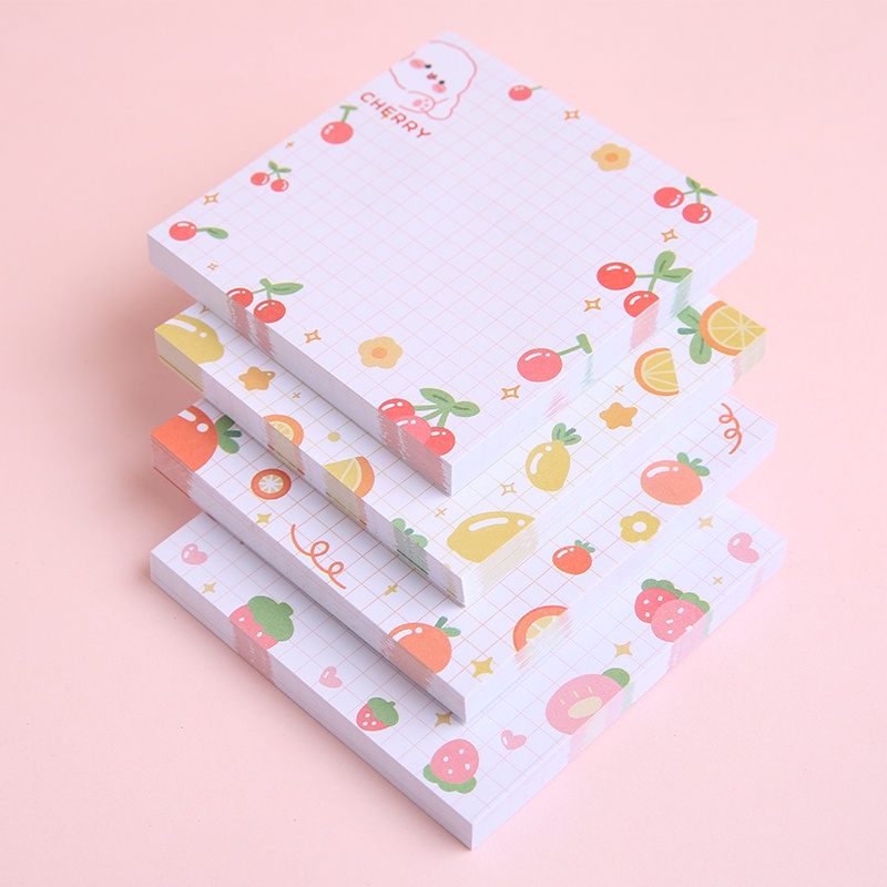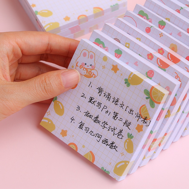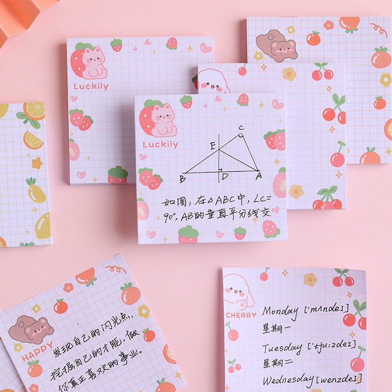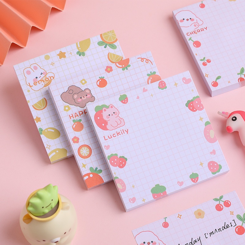 80 Sheets Kawaii Cartoon Animal&Fruit Series Sticky Notes Mini Tearable Grid Message Book