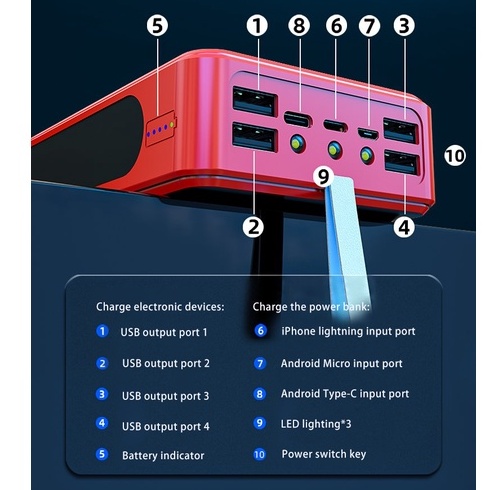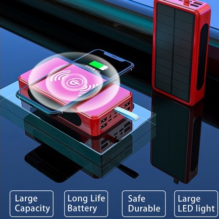 80000mAh🔥 Original Power Bank Solar Wireless powerbank Fast Charger 4 USB LED Light Powerbank for Iphone Huawei Xiaomi
