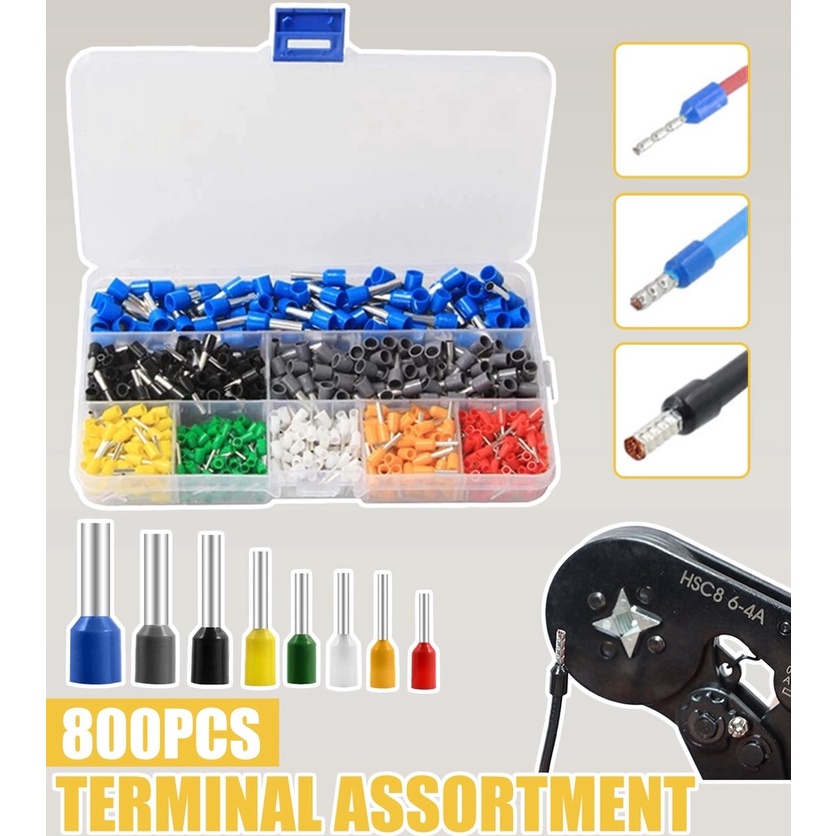 800PC 8 Sizes Ferrule Crimping Kit Wire Ferrules Insulated Crimp Pin Terminal Kit for Electrical Wire Connector Cable
