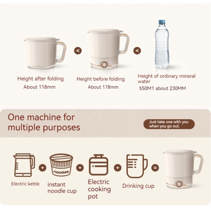800ml Foldable Electric Kettle Portable Mini Household Travel Kettle 0.8L Stainless steel Kettle