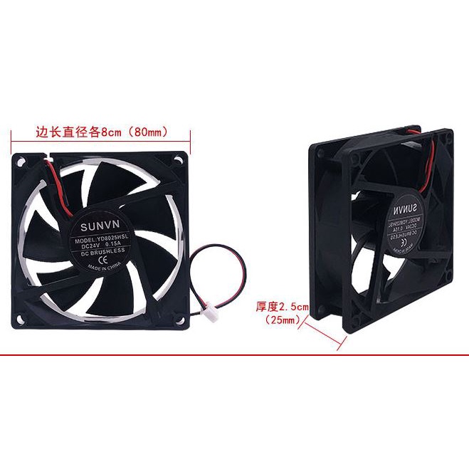 8010 8015 8020 8025 8cm 2pin 2 pin DC 5V 12V 24V 8 cm Fan Oily Bronze Sleeve Bearing Silent Brushless Cooling Fan 80mm