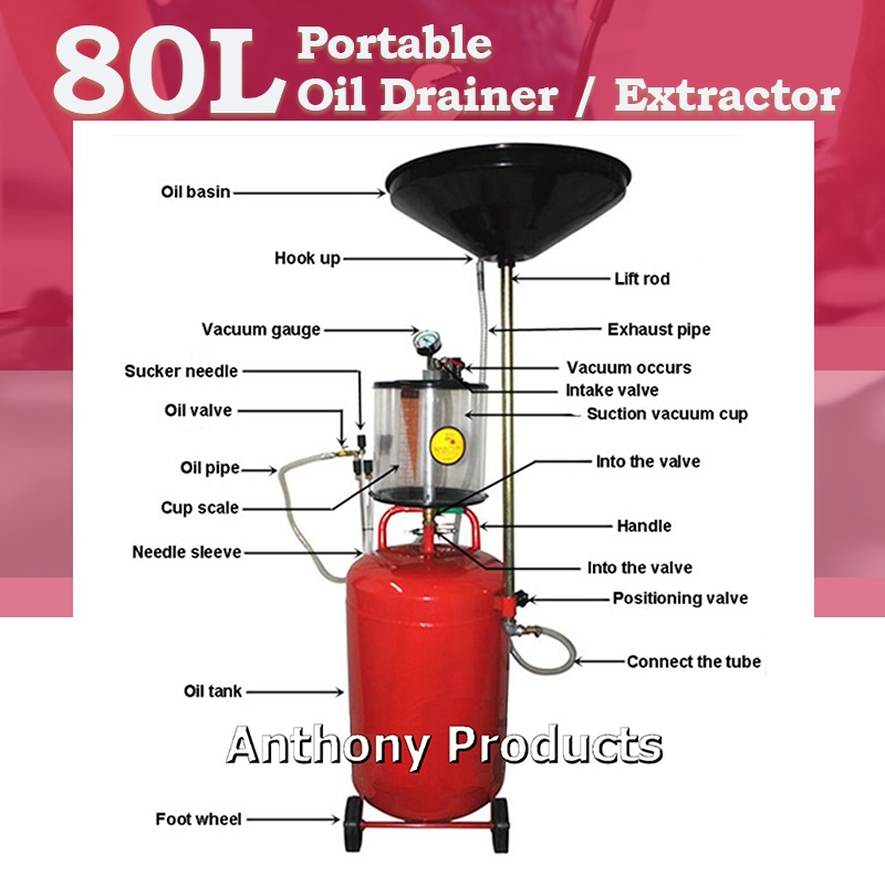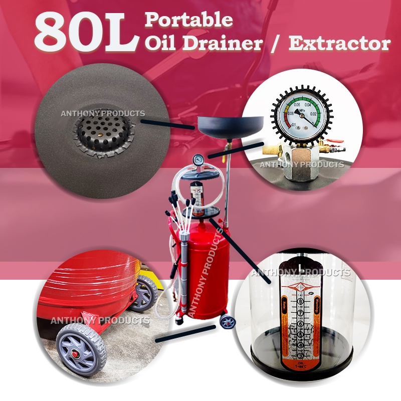 80L Pneumatic Portable Oil Drainer Waste Drain Tank Air Operated Drainer Heavy Duty Waste Oil Extractor Sedut Minyak
