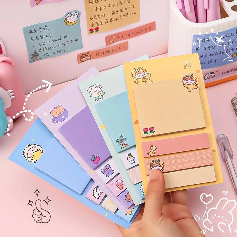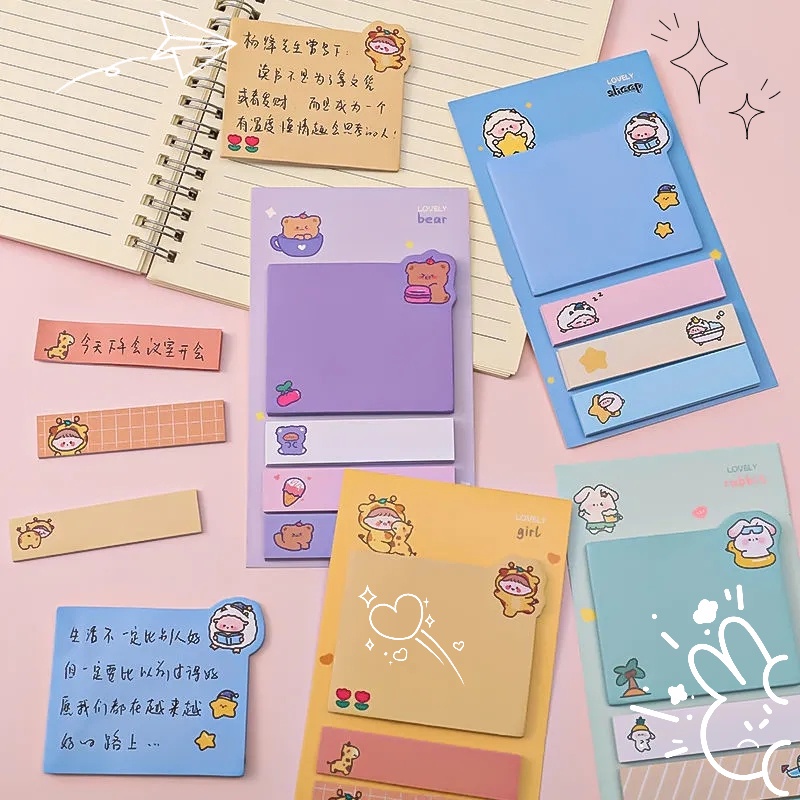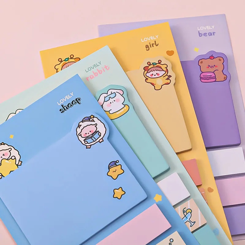 80Sheets/Set Cute Self-Adhesive Index Post Sticky Notes / Four Styles Index Memo Pad Bookmarks Paper for School Office