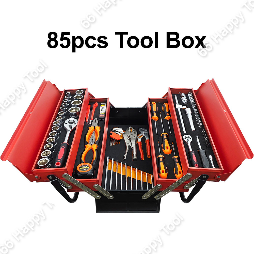 85pcs / 86pcs Metal Tool Box Set Heavy Duty Tools Full Set Kotak Spannar Ratchet Set Spanar Set 5 Layer Cantilever Box
