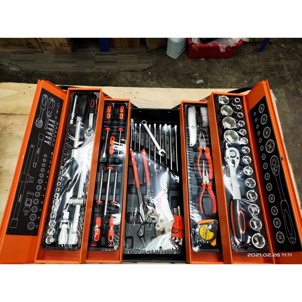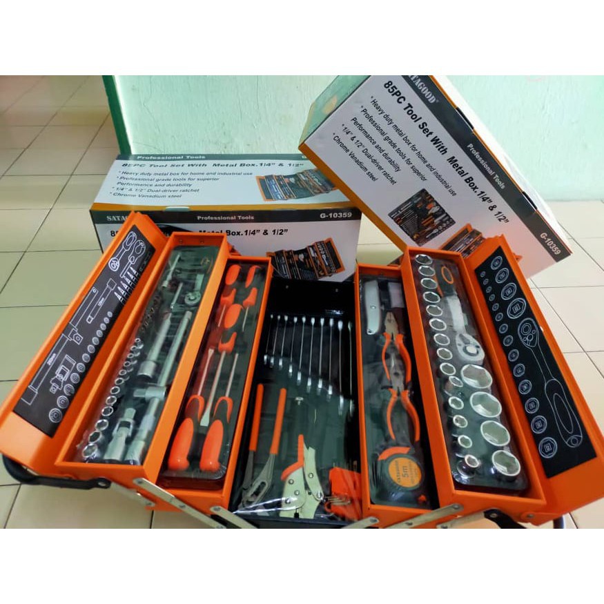 85pcs tools set Cantilever Metal Tool Box Set 5 Tier 85pcs Socket Set 1/4" & 1/2" Spanner Tools Set