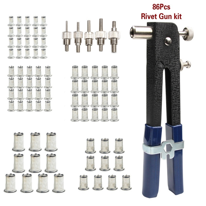 86Pcs/set M3-M8 Blind Hand Rivet Nuts Heavy Duty Nut Threaded Insert Rivet Tool Riveter Gun with Riveting Household Repair Tools