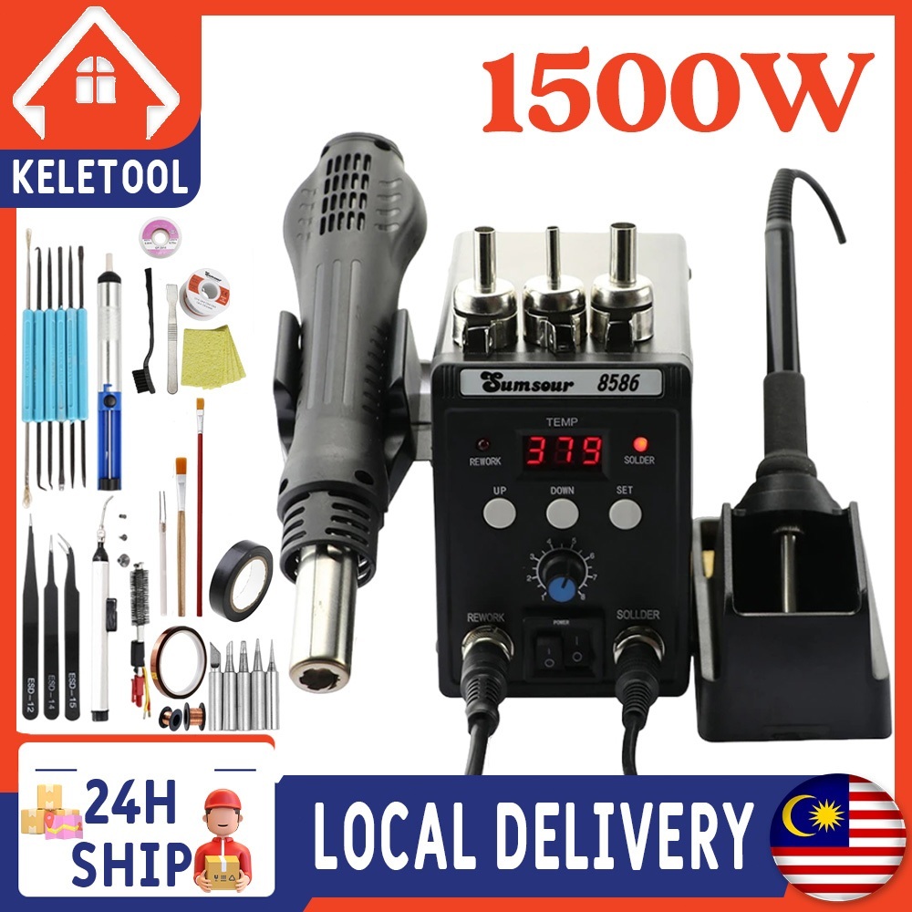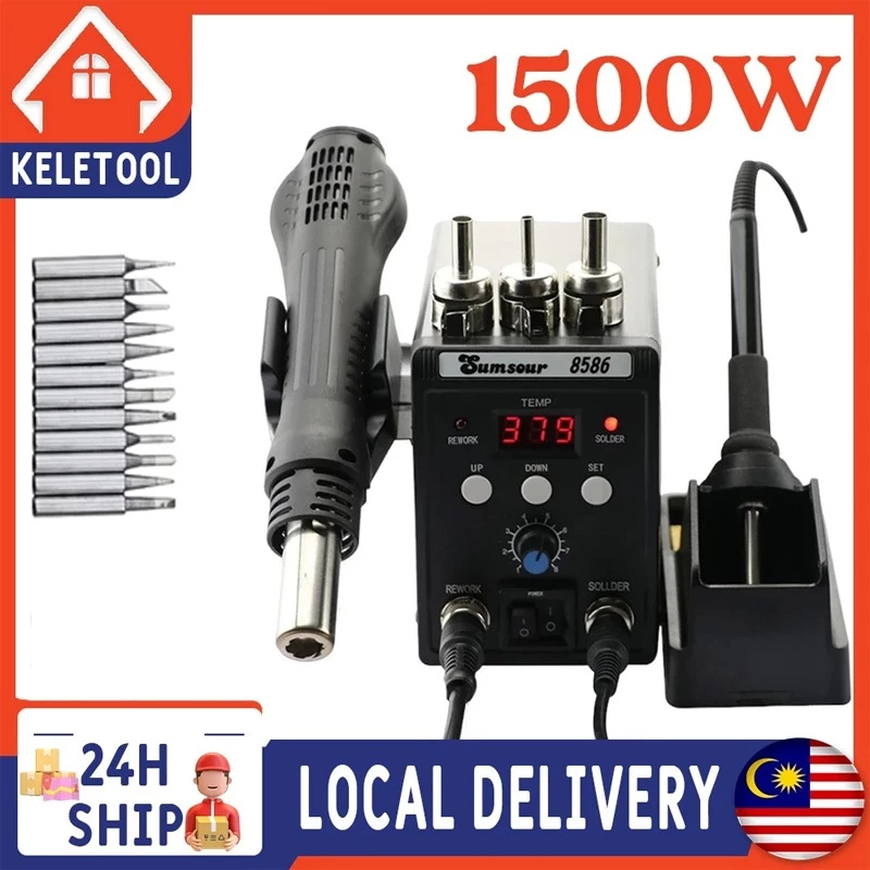 2 in 1 8586 Rework Soldering Station Digital Display SMD Hot Air Gun Solder Iron 220V Welding Desoldering Repair Tools