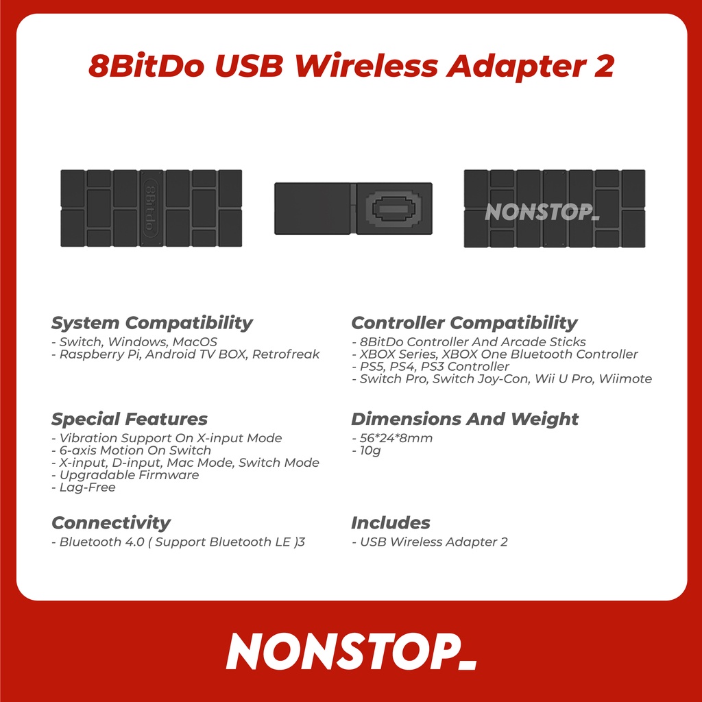 8BitDo USB Wireless Adapter 2 PS4 PS5 XBOX Series Switch Pro Controller Bluetooth Receiver