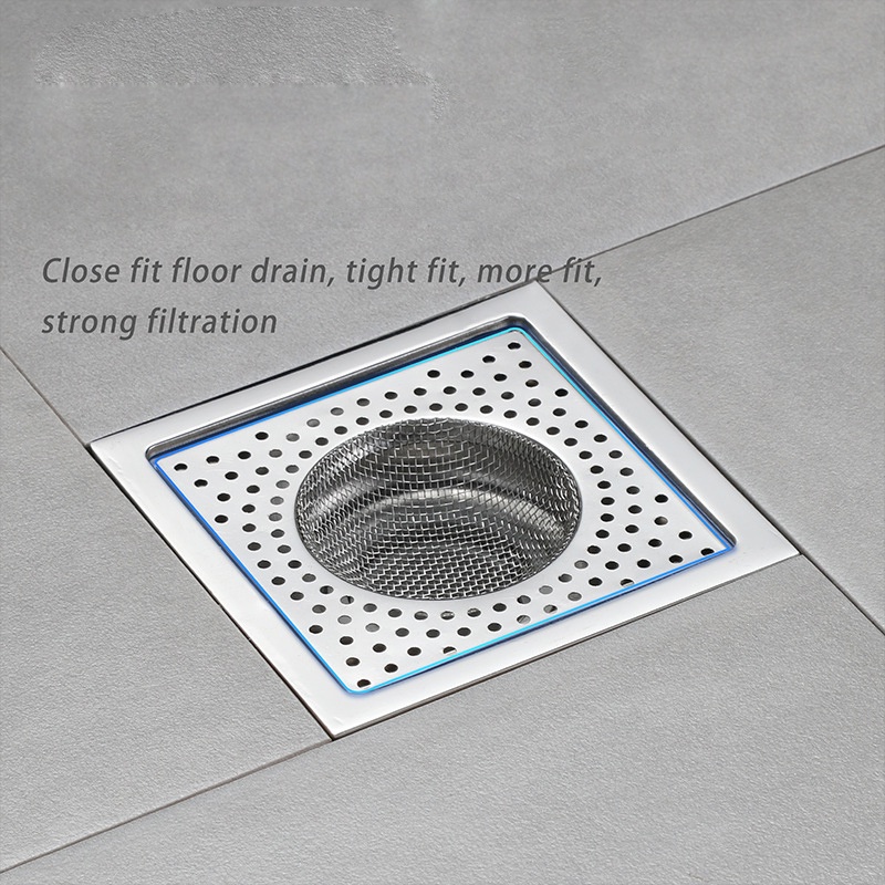 8CM Square Stainless Steel Floor Drain Filter/ Bathroom Kitchen Anti-clogging Sewer Anti-debris Hair Catcher Mesh Cover Drain Filter
