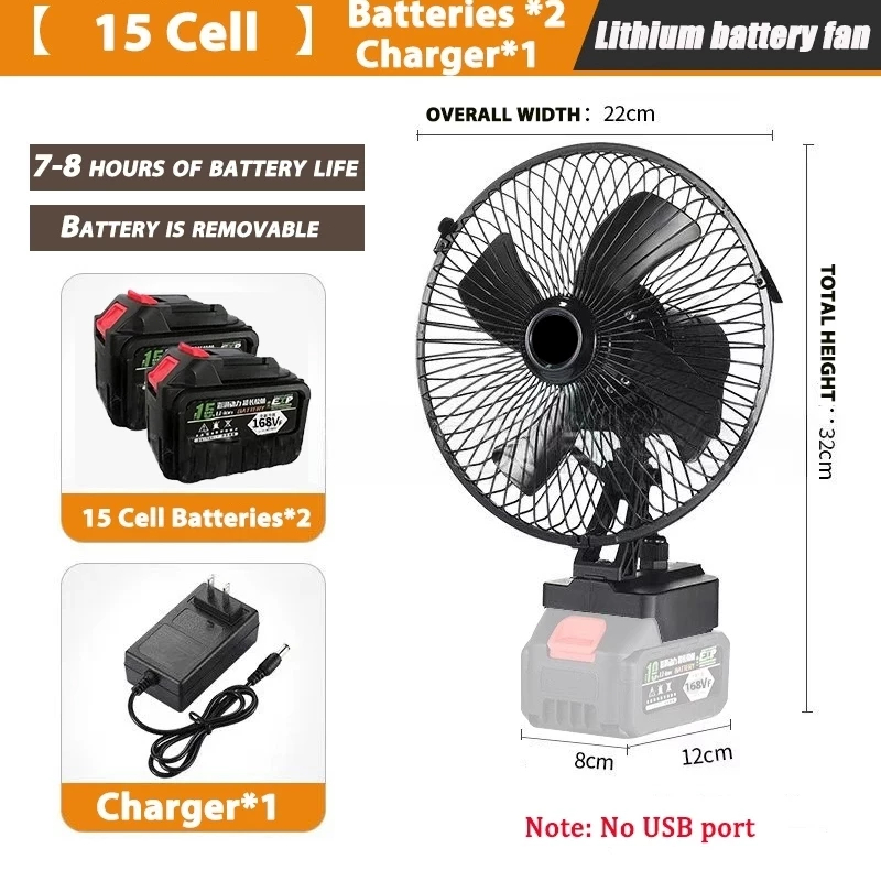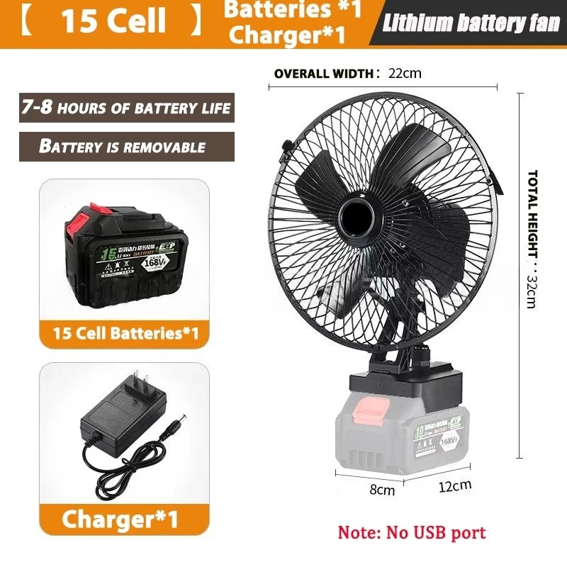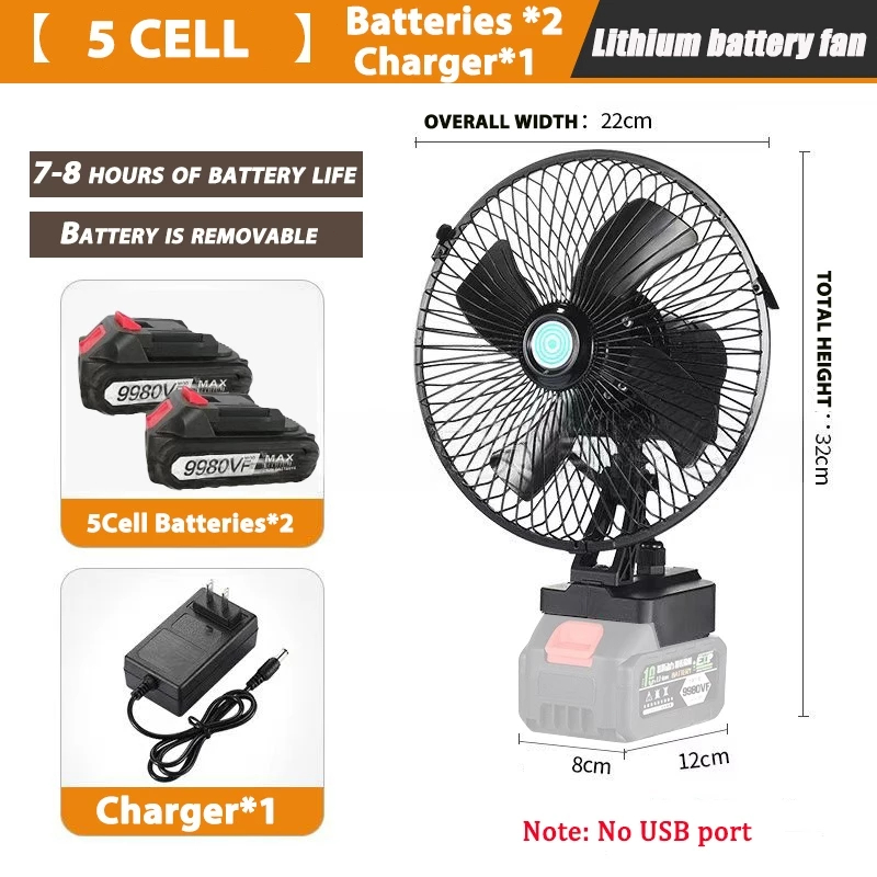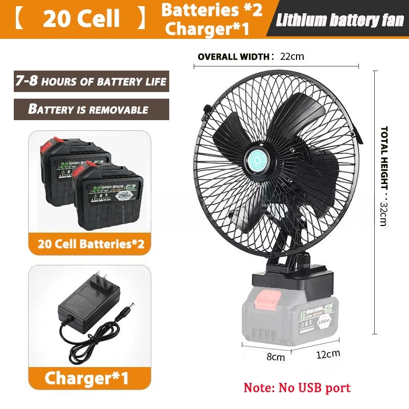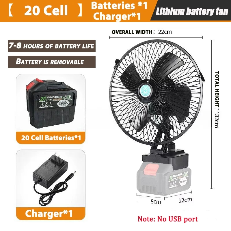 8Inch Portable Lithium Battery Fan High Power Outdoor Desktop Cooling Fan Adjustable Cordless Fan