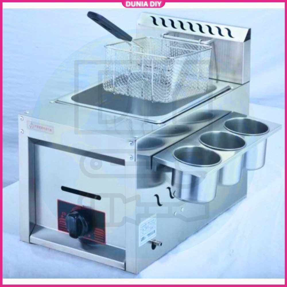8L w/ Wall Commercial Gas Deep Fryer Machine Stainless Steel Dapur Goreng Gas Frying Stove Kentang Goreng Gas Cooker
