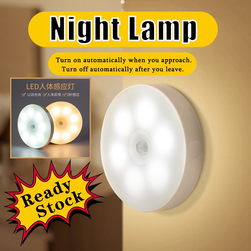 8LED Motion Sensor Lights LED Night Light Battery Rechargeable Battery Powered Stick on Closet Bathroom Stair Wall Hallway Cabinet Indoor Lights Warm White