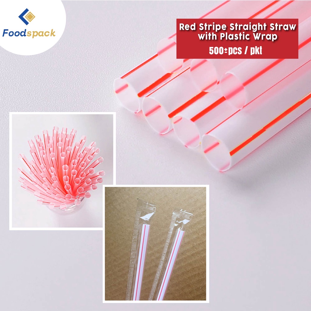 8MM X 190MM Red Stripe Straight Straw with Plastic Wrap - Disposable Drinking Straw / Plastic Straw (500PCS)