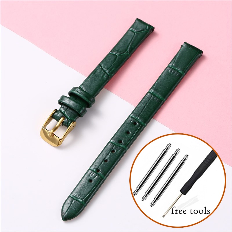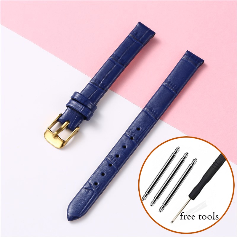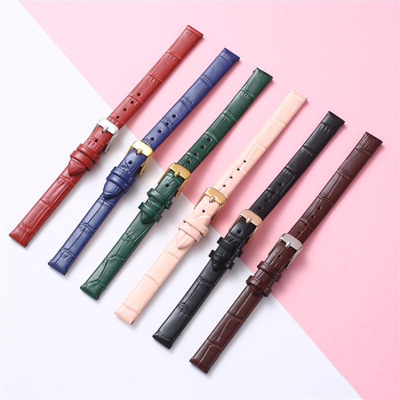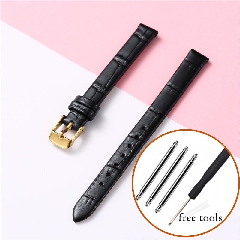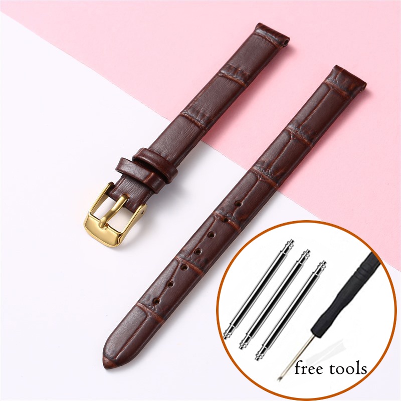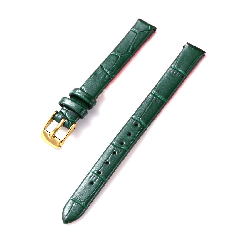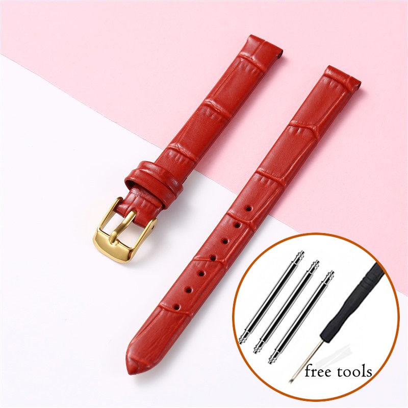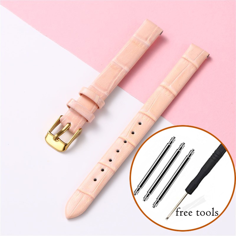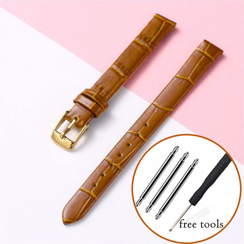 8mm 10mm 12mm Watch Genuine Leather Strap Small Size Fashion Bracelet for Women 14 16 18 20mm Slub Pattern Band Wristband with Gold Metal Buckle for Lola Rose