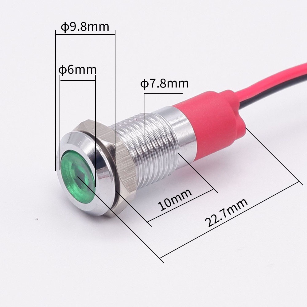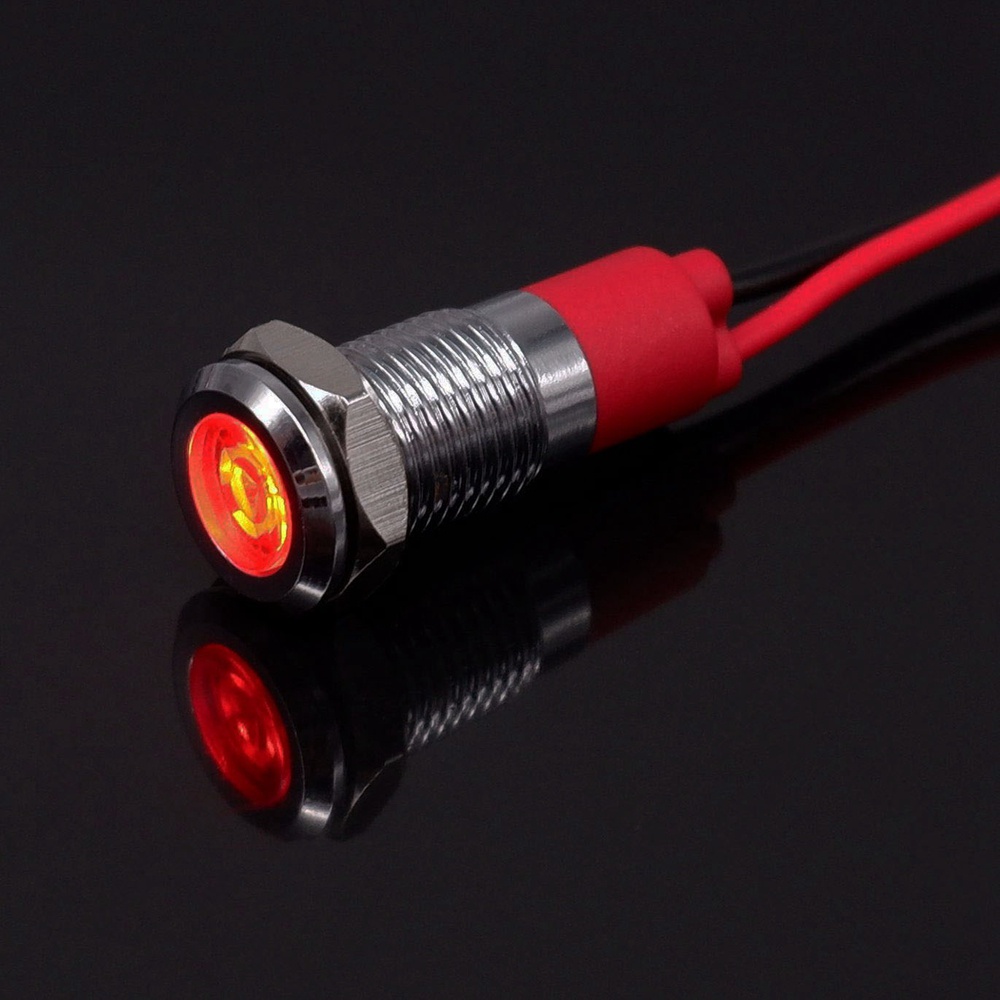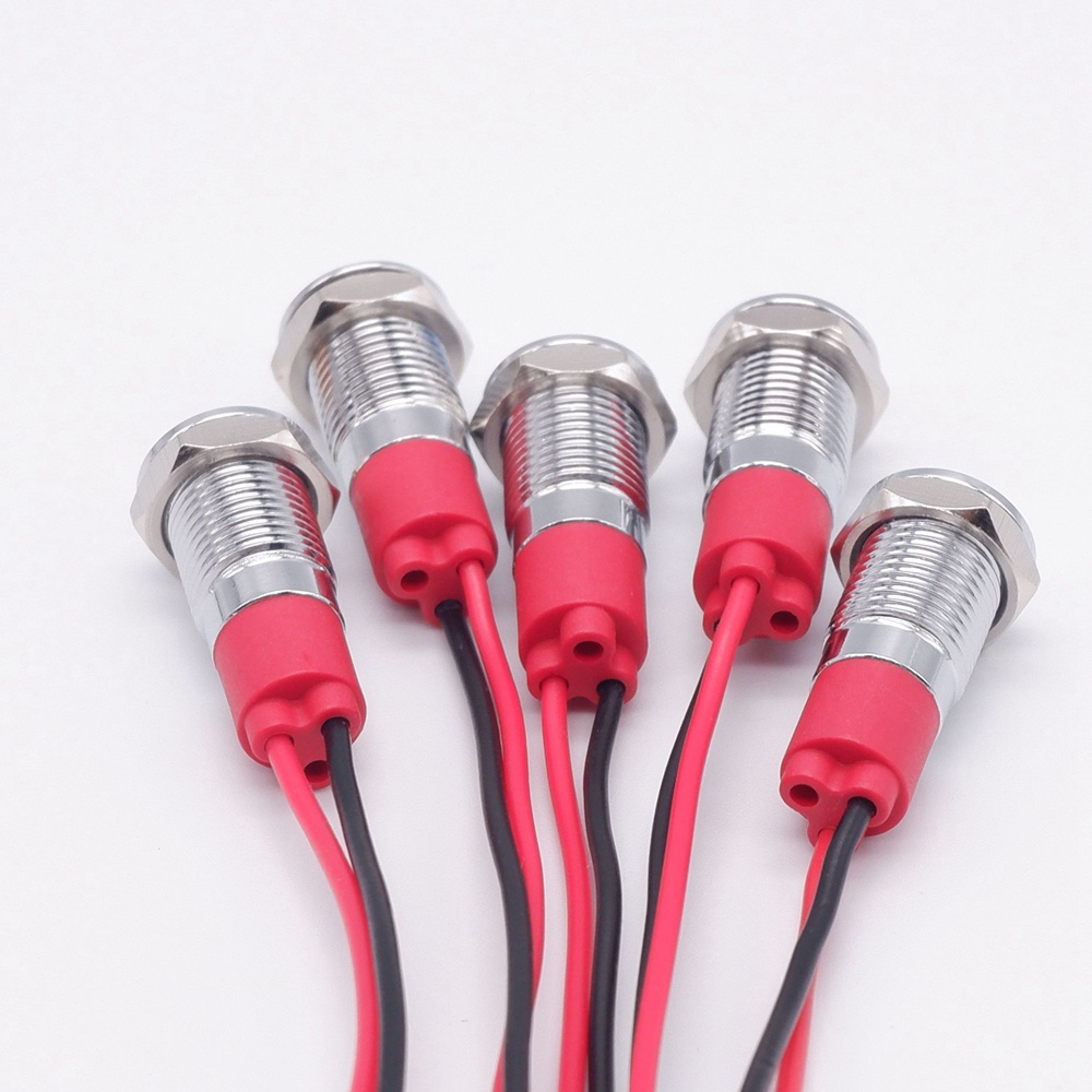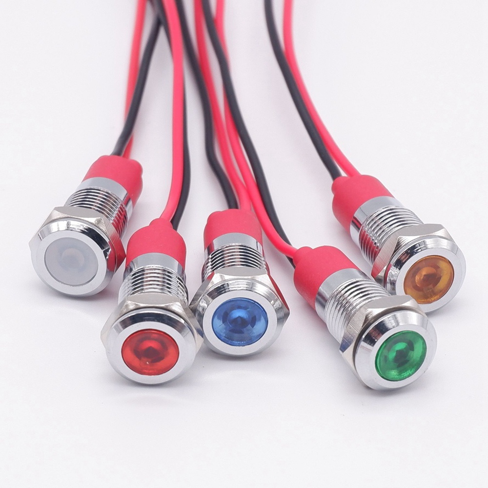 8mm LED Warning indicator light Metal Waterproof Signal Lamp Pilot Wires switch 3V 5V 6V 12V 24V 220V red yellow blue