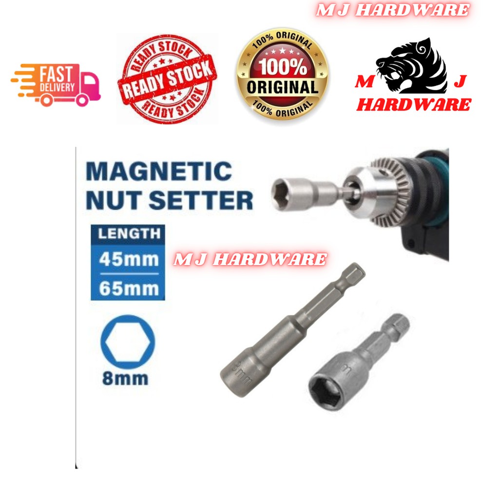 8mm Magnetic Hex Nut Setter / 45mm & 65mm / Socket For Hex Head Drill Bit / Screw Bits / Mata Pasang Ikat Skru Nut (1pc)