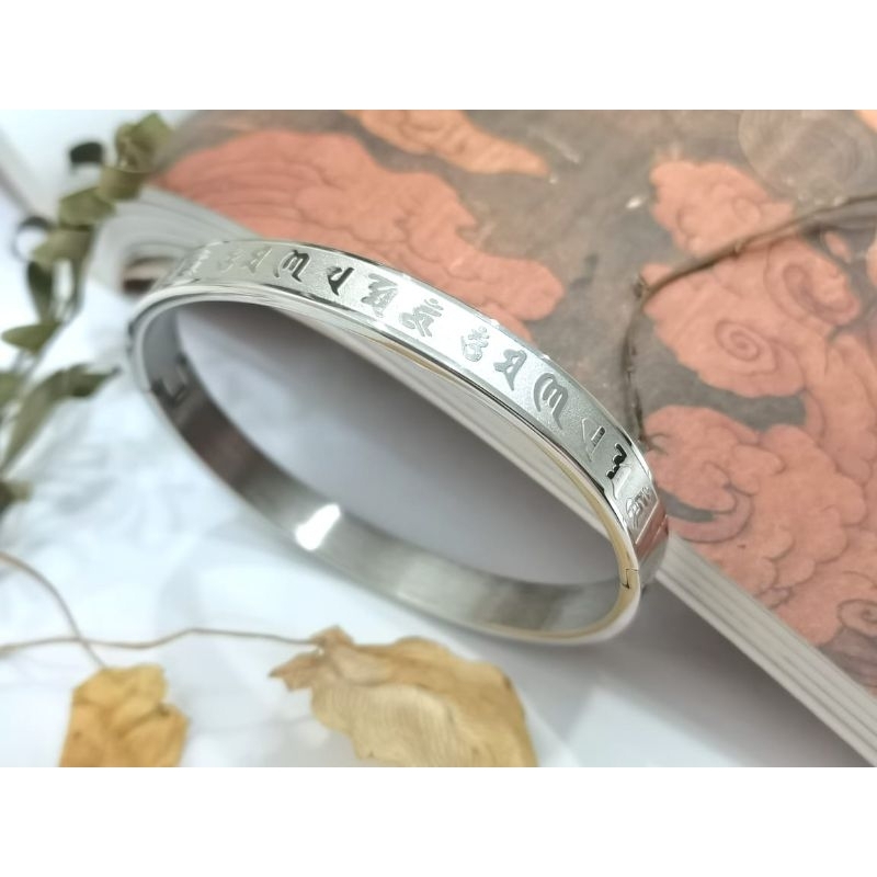 8mm Men's Stainless Steel Tibetan Om Mani Padme Hum Medatation Bangle.