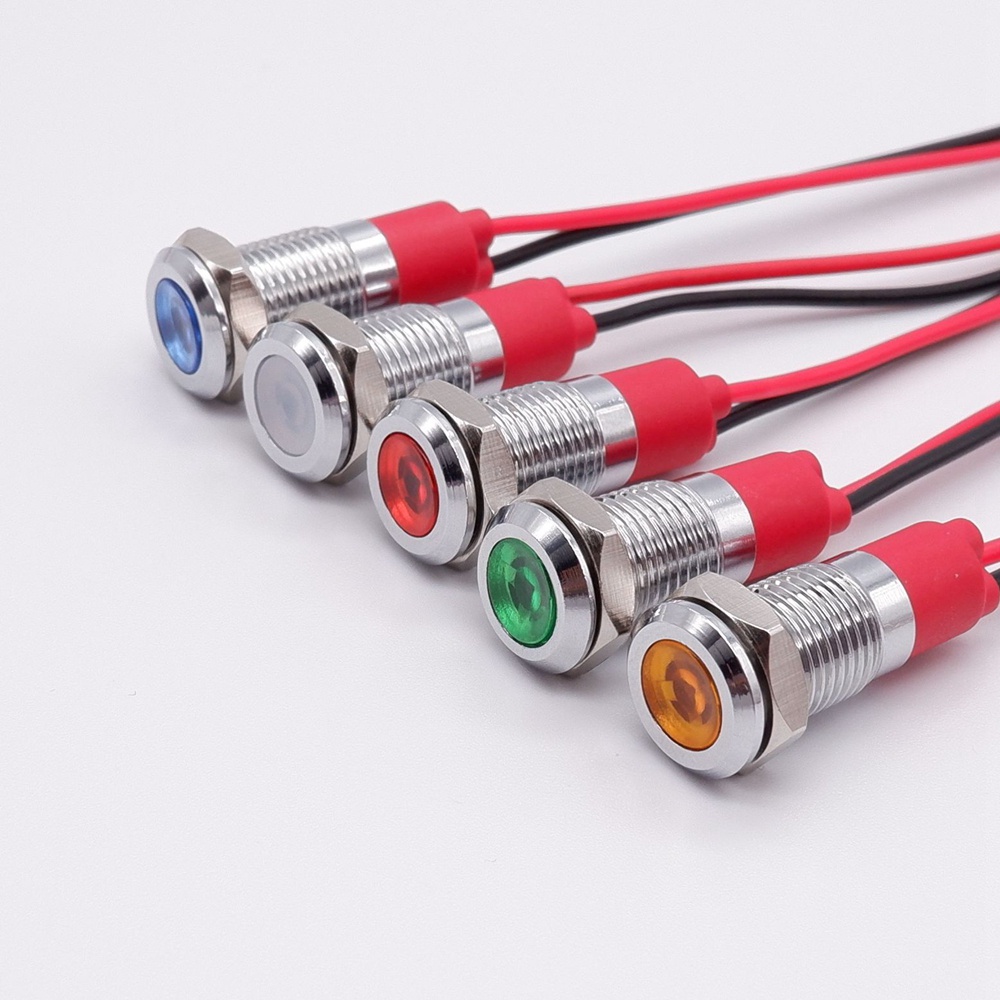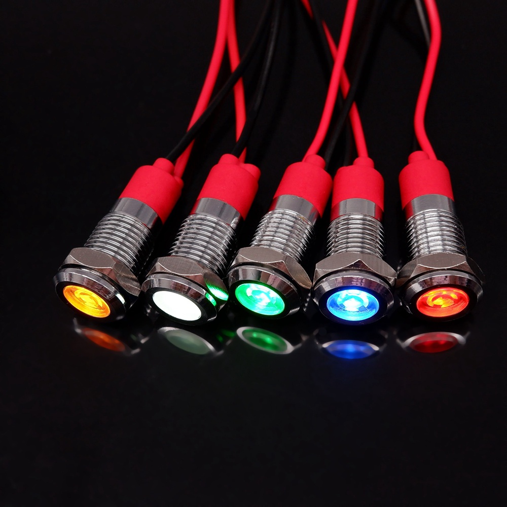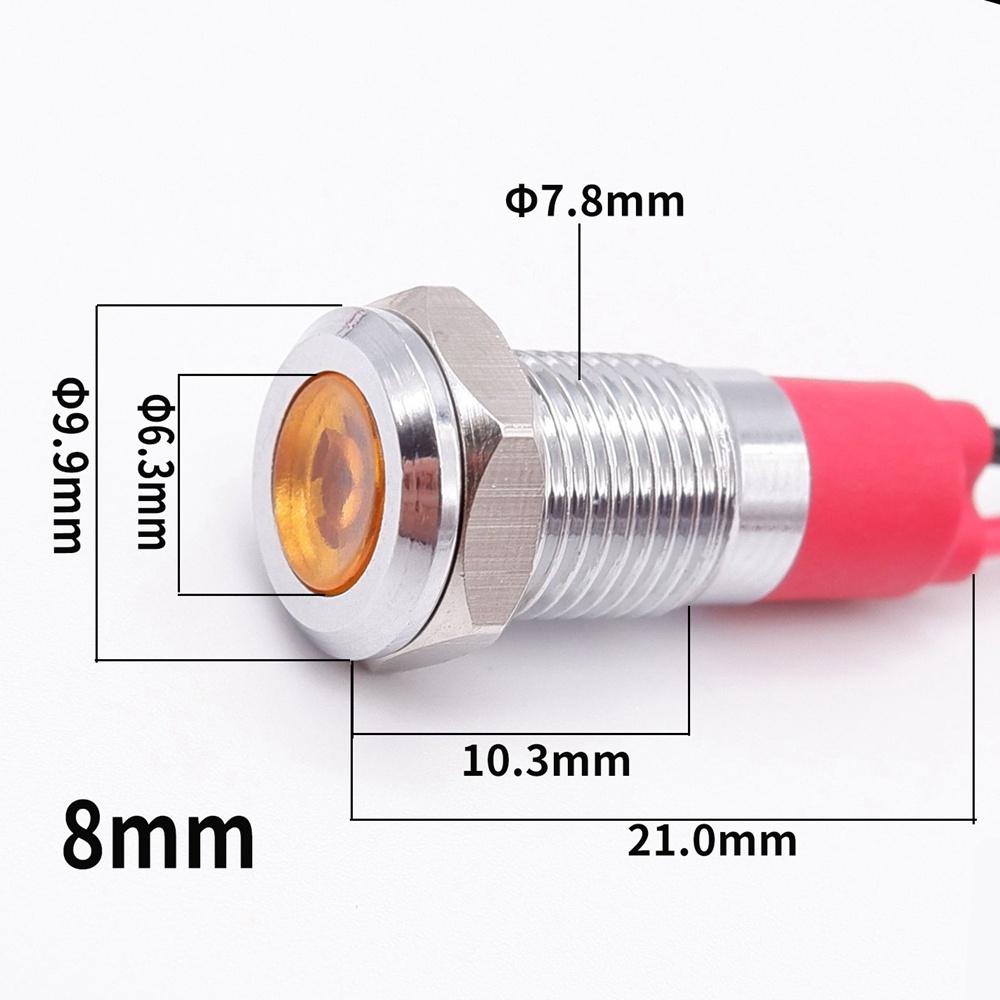 8mm Warning LED Metal Indicator Light Pilot Waterproof Signal Lamp 5V 12V 24V 220v With Wire Red Orange Blue Green White 1PCS