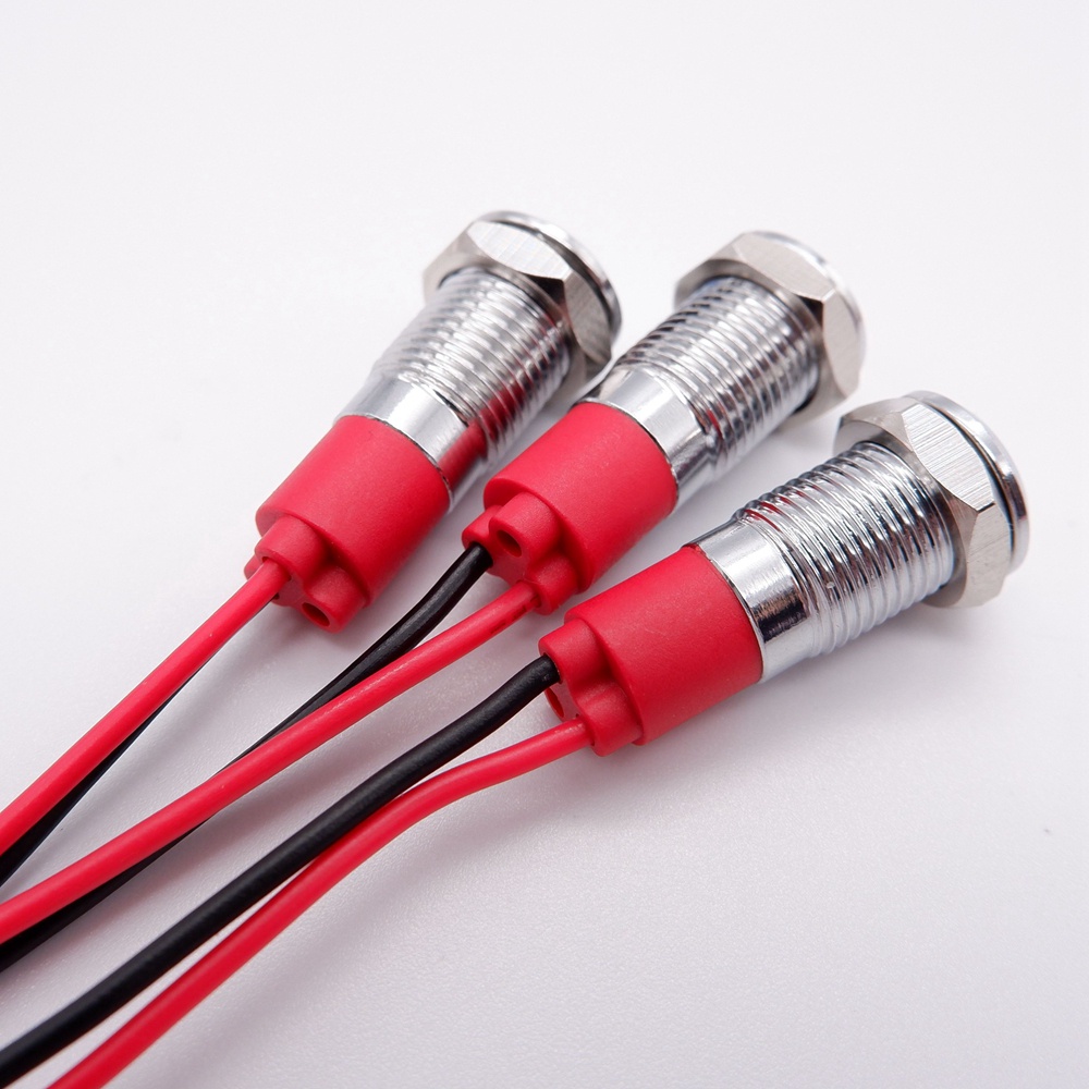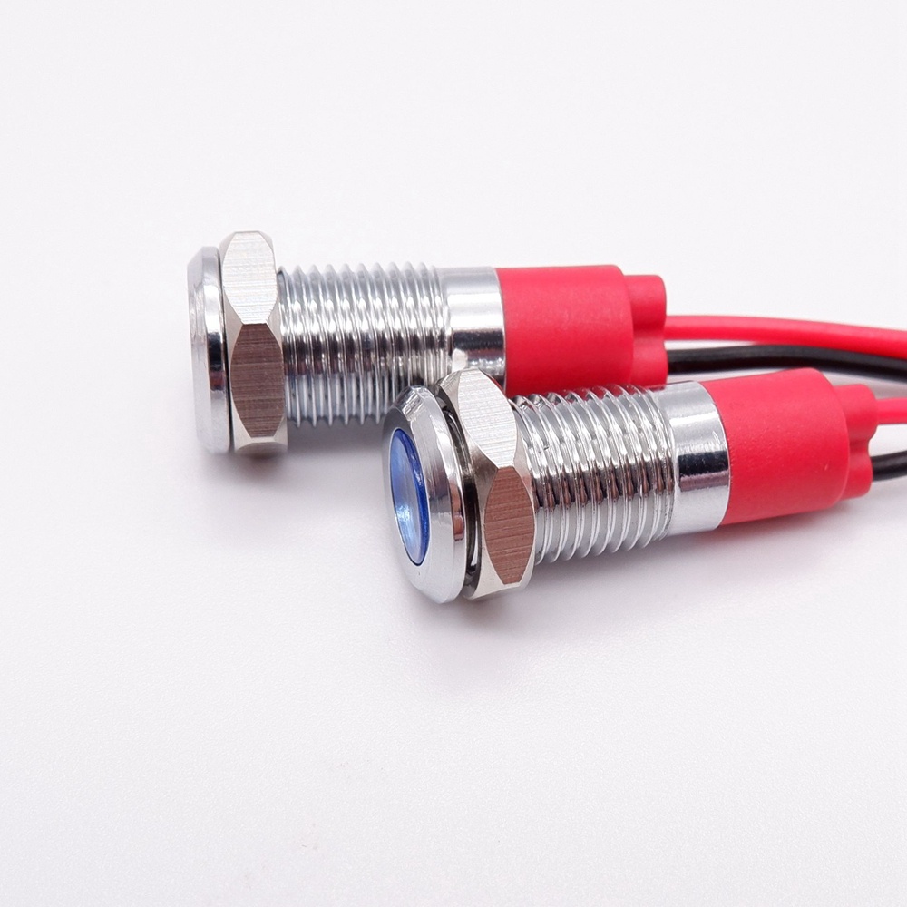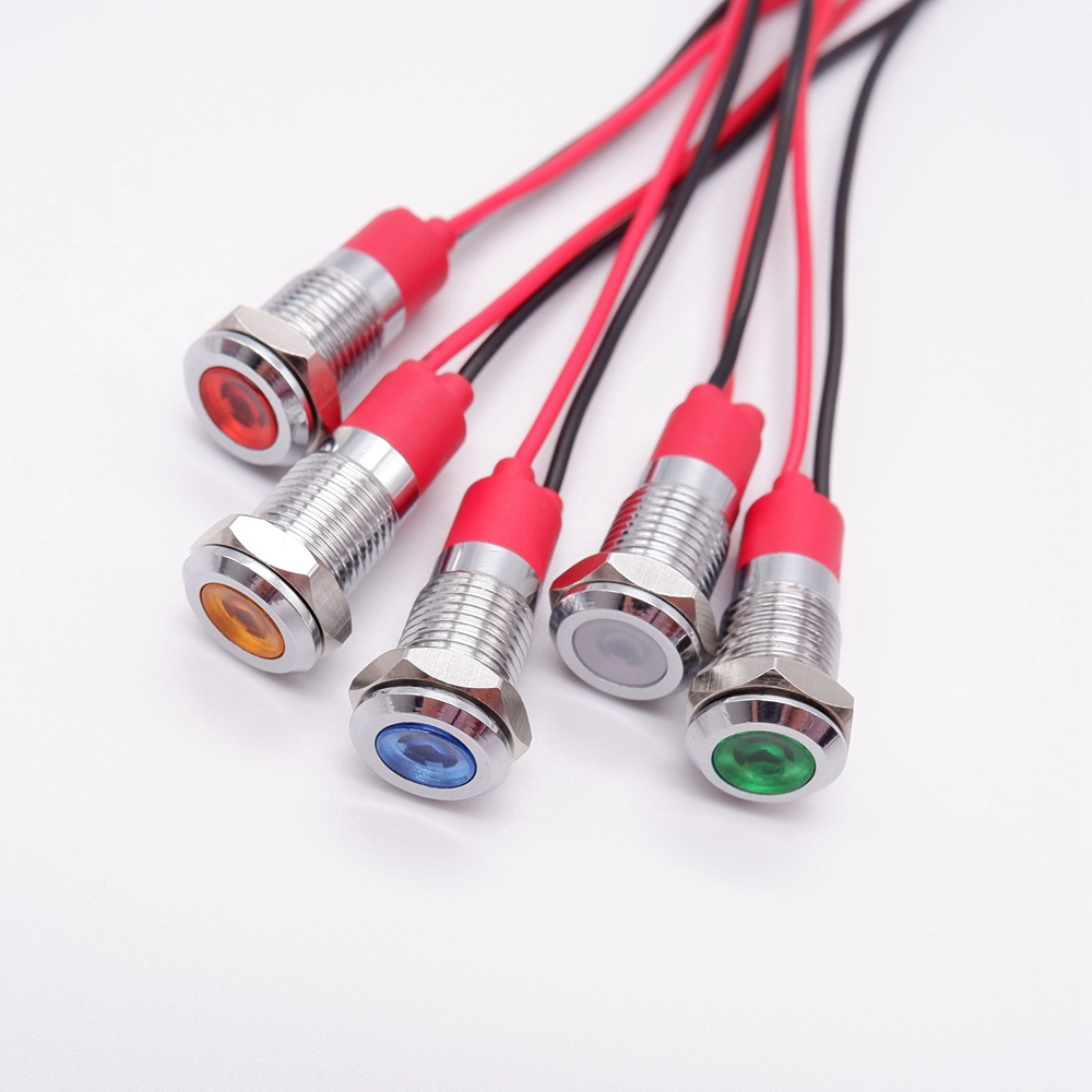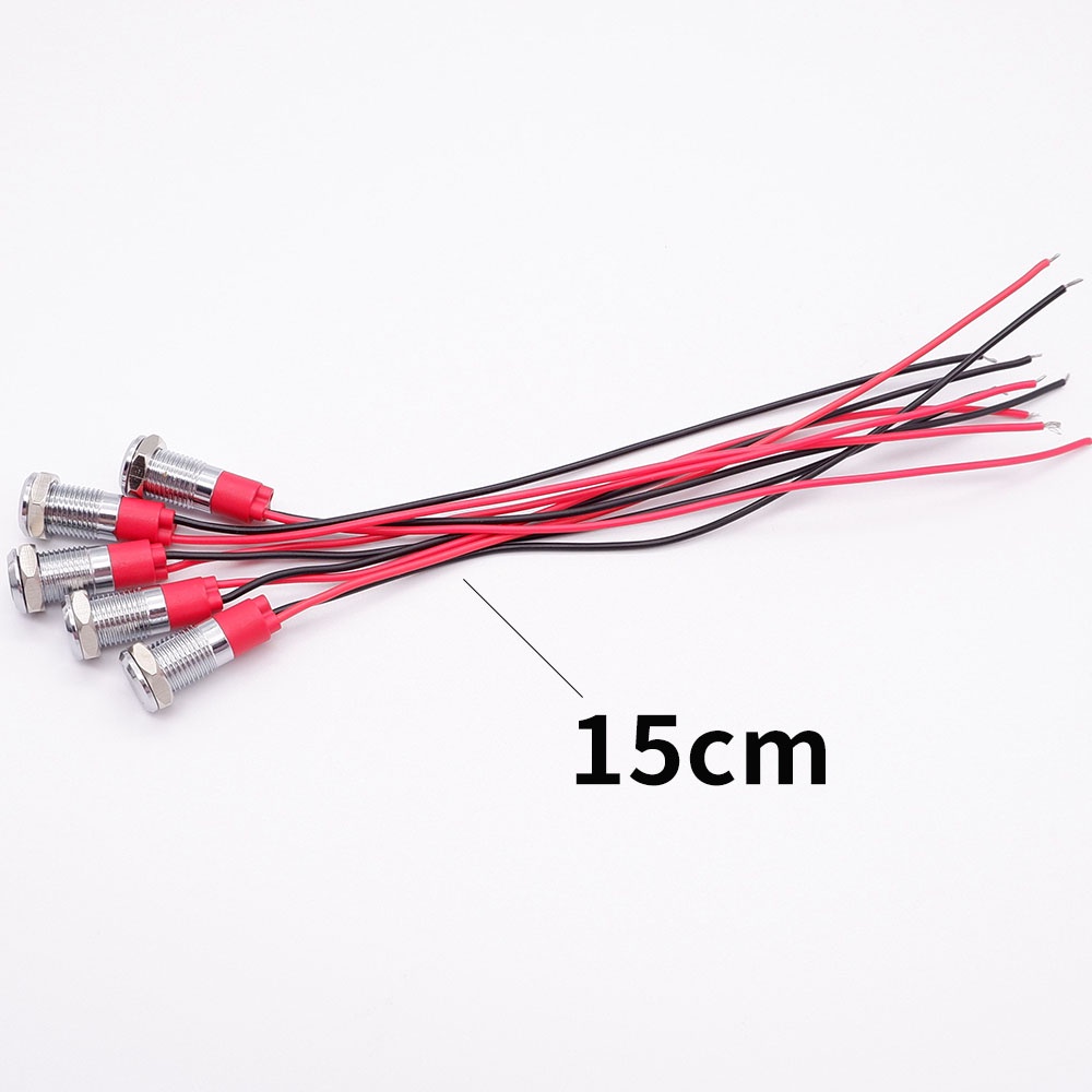 8mm Warning LED Metal Indicator Light Pilot Waterproof Signal Lamp 5V 12V 24V 220v With Wire Red Orange Blue Green White 1PCS