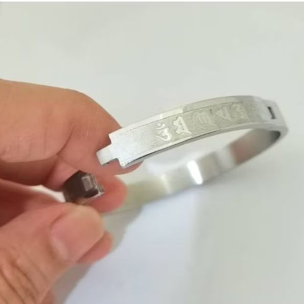 8mm Wide Stainless Steel Om Mani Padme Hum Medatation Bangle
