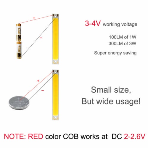 8mm x 60mm LED COB Bar Light Bulb 3W DC 3V COB Strip Auto Lamp Car DRL Lights DIY Home Work Lighting