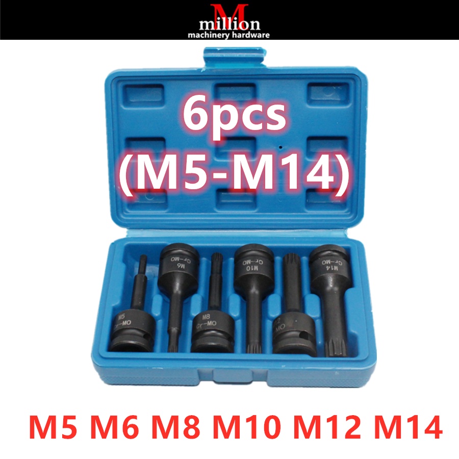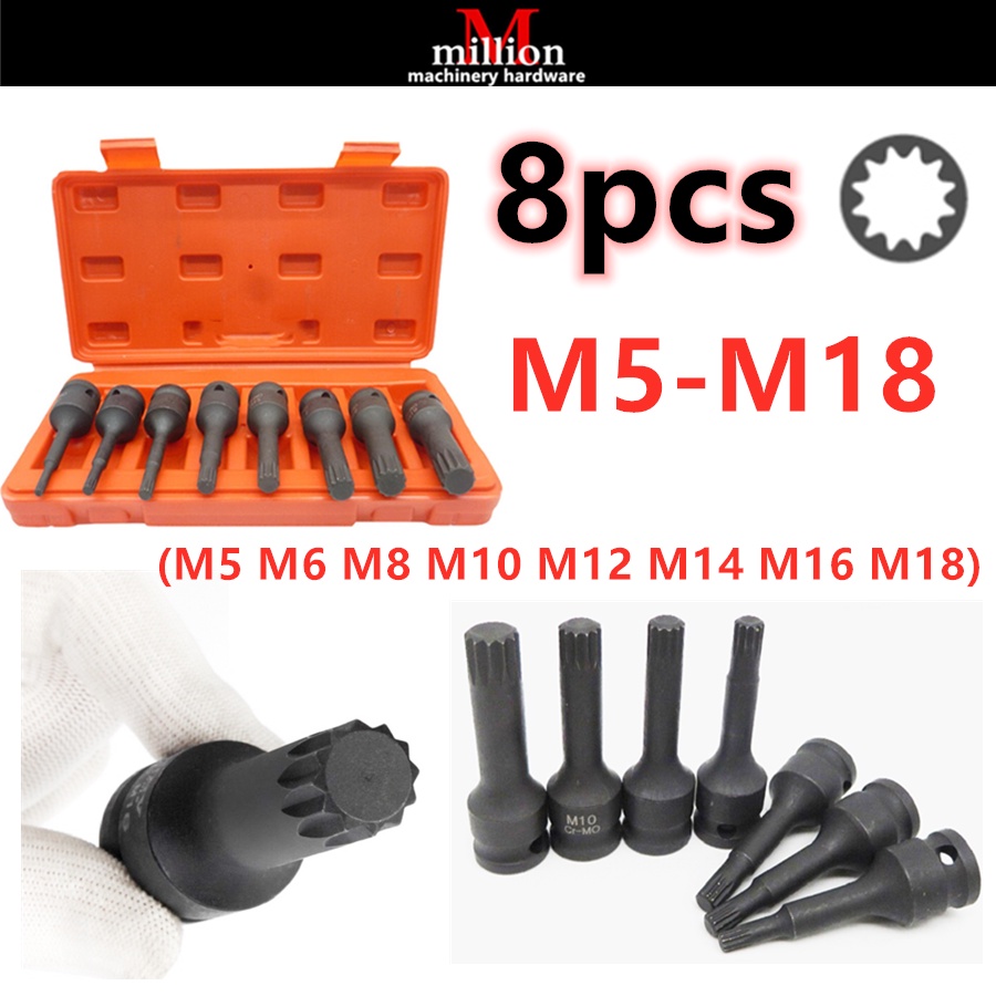 8pcs 1/2" inch M5-M19 Drive Pneumatic Air 12 Point Spline Socket Bit Set Square M Type Socket