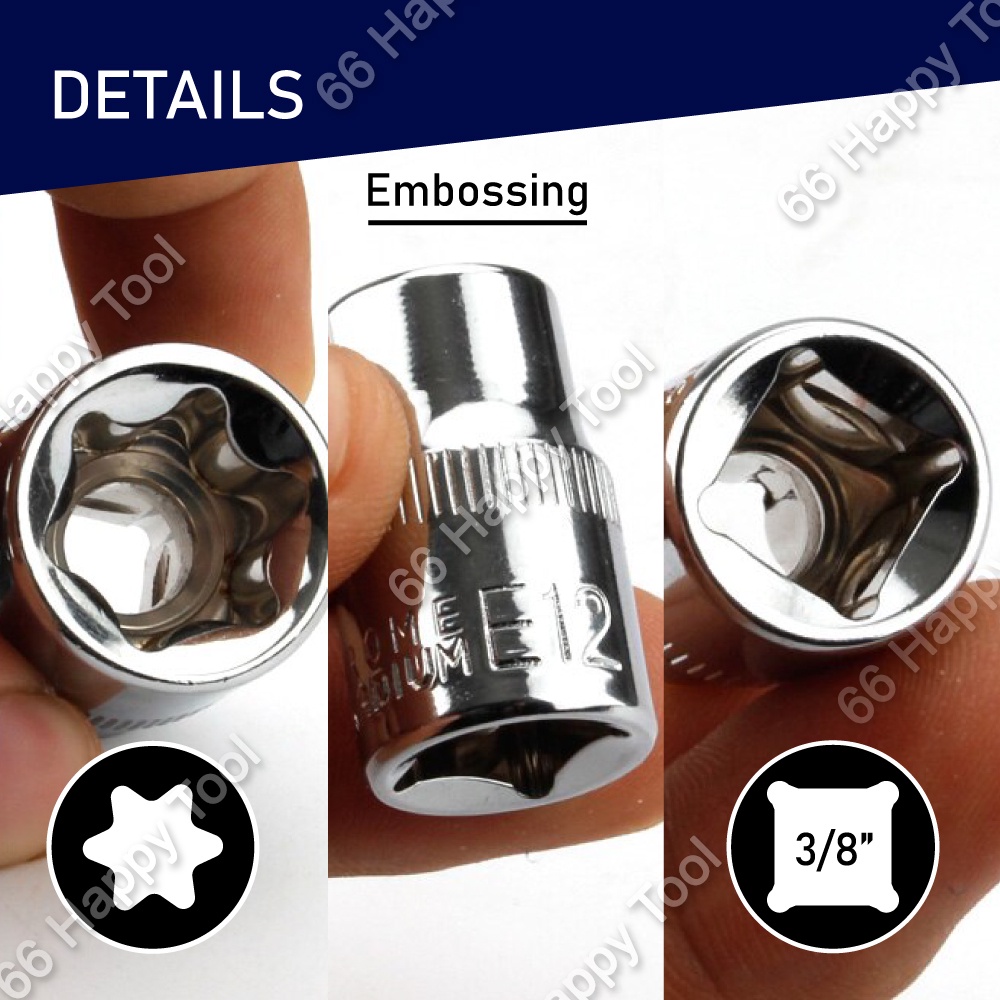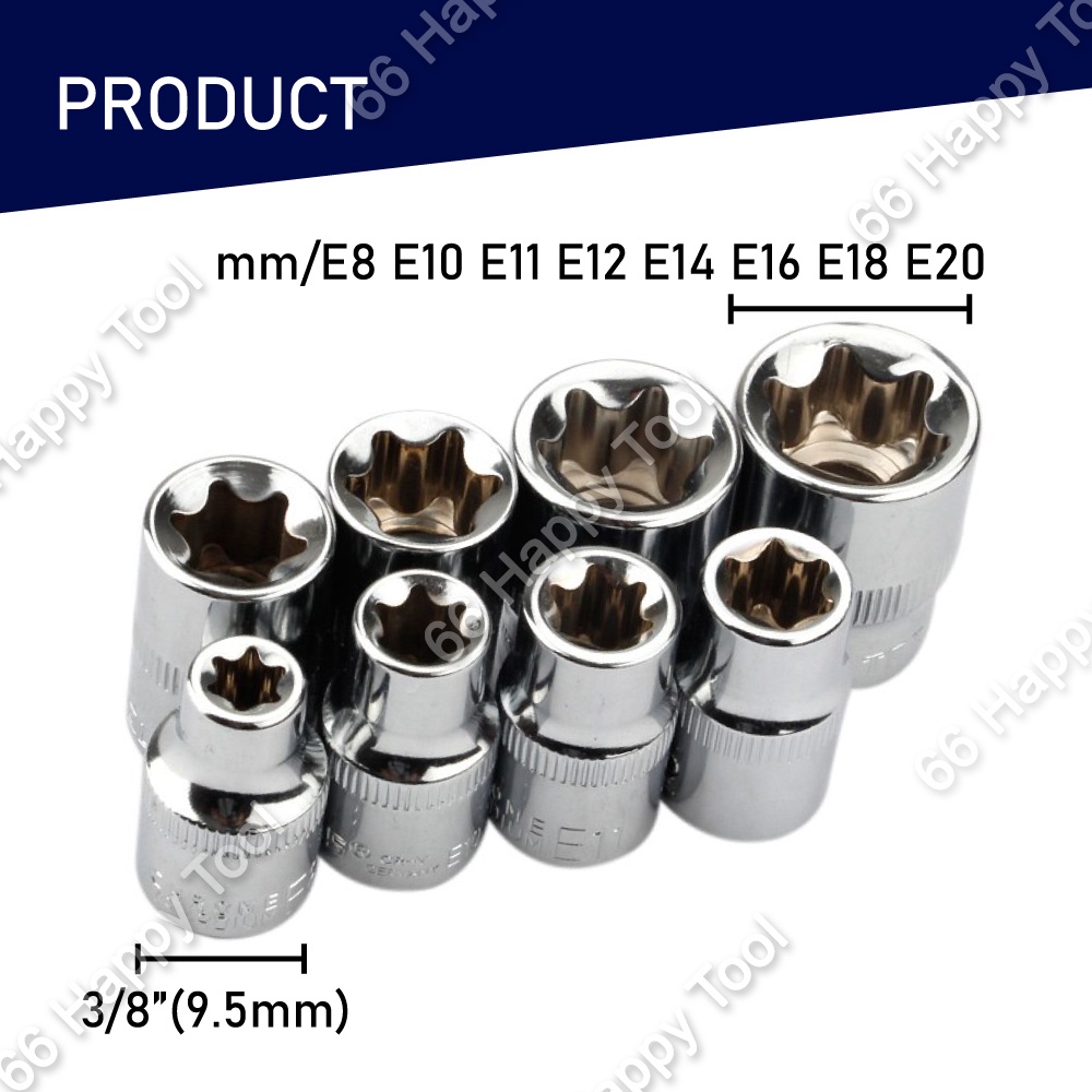 8pcs 3/8" Inch Torx Star Socket Set E Type Repair Hand Tool Kit E8-E20 Drive Sockets Tools Nut Removal Wrench Female Bit