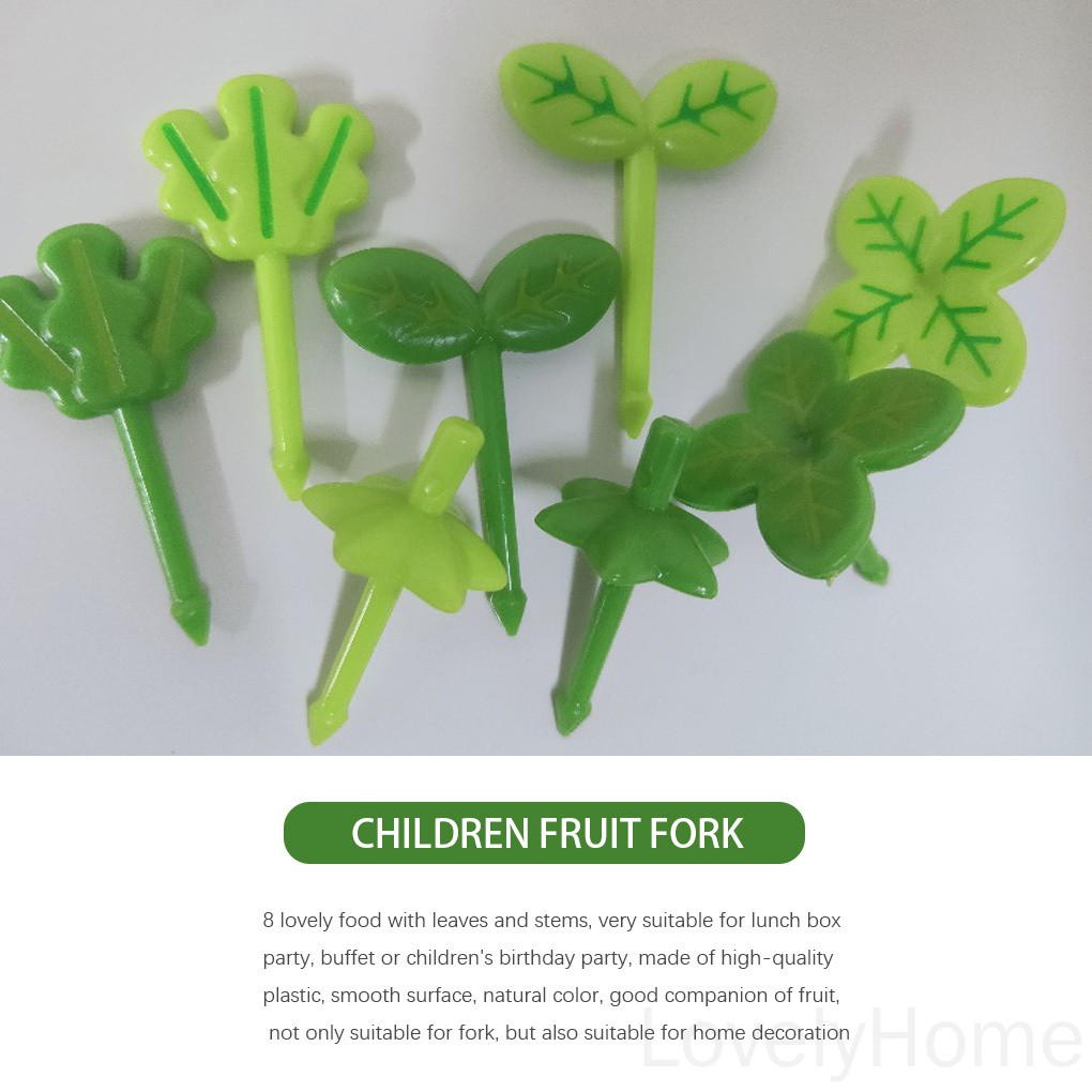 8pcs Fruit Fork Children Toothpick Food Prod Leaves Plastic Decoration Lunch Box Accessory LovelyHome