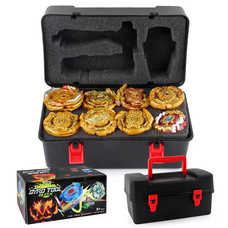 8pcs Golden Beyblade Set Gyro Burst With Launcher Portable Storage Box Kids Gift